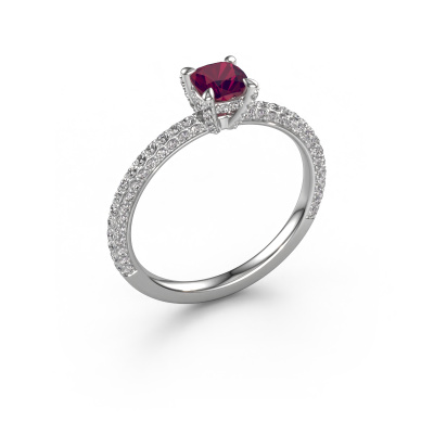 Der oben gezeigte Platin Verlobungsring wird Saskia 2 cus genannt. Es ist ein Pavé Solitär Ring, da er einen zentralen Edelstein und ein Band mit Pavé-Fassung hat. Der moderne Pavé Solitär Verlobungsring ist in der Kombination Platin mit Platin und ist mit einem cussion 4.5 mm Rhodolit-Mittelstein besetzt und das Band hat eine Pavé-Fassung mit Lab grown Diamant. Jedes Schmuckstück wird nur für Sie persönlich hergestellt, mit Liebe zum Detail und Design. Um den zentralen Stein noch mehr zu betonen, hat das Band eine Pavé-Fassung mit weiteren Rhodolit. Durch die offenen Krappen kann das Licht aus mehreren Winkeln auf den Rhodolit treffen und der Rhodolit-Ring funkelt noch mehr. Das obere Foto zeigt die leidenschaftlich handgefertigten Details des Rings. Die hohe Positionierung der Mittelstein ist ein echter Blickfang. Der perfekte Verlobungsring für das Kronjuwel Ihres Lebens!Haben Sie ein bestimmtes Budget? Sie können uns gerne kontaktieren, damit wir Ihre Optionen besprechen können. Wir bieten unsere Verlobungsringe zum garantiert besten Preis, denn wir fertigen sie auf Bestellung. Solche Preise finden Sie nirgendwo anders!Unsere Designer und Goldschmiede arbeiten jeden Tag zusammen und versuchen, neue Schmuckstücke zu kreieren. Vielleicht haben Sie irgendwo einen schönen, moderne Verlobungsring gefunden, nach dem Ihr einzigartiger Ring gestaltet werden kann. Setzen Sie sich mit uns in Verbindung. Wir machen Ihnen ein Angebot, basierend auf einem fairen Preis/Leistungsverhältnis, das Sie begeistern wird.Um es einfacher zu machen, bieten wir eine kostenlose 30-tägige Rücksendung.
