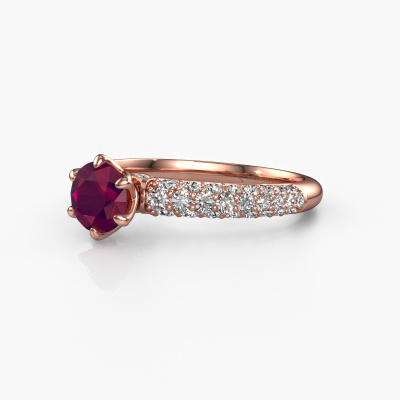 Der oben gezeigte Ring wird Meryl genannt. Es ist ein Pavé Solitär Ring, da er einen zentralen Edelstein und ein Band mit Pavé-Fassung hat. Dieser 14 Karat Roségold ring ist mit einem 5.7 mm rund Rhodolit-Mittelstein besetzt und das Band hat eine Pavé-Fassung mit Diamanten. Jedes Schmuckstück wird nur für Sie persönlich hergestellt, mit Liebe zum Detail und Design.Dieser exklusive Roségold Pavé Solitär Verlobungsring mit Pavé-Fassung hat einen exquisiten, rund Rhodolit als Mittelstein. Um den zentralen Stein noch mehr zu betonen, hat das Band eine Pavé-Fassung mit weiteren Diamanten. Durch die offenen Krappen kann das Licht aus mehreren Winkeln auf den Rhodolit treffen und der Rhodolit-Ring funkelt noch mehr. Das obere Foto zeigt die leidenschaftlich handgefertigten Details des Rings. Die hohe Positionierung der Mittelstein ist ein echter Blickfang. Der perfekte Verlobungsring für das Kronjuwel Ihres Lebens!Nach Erhalt Ihrer Bestellung beginnen unsere Goldschmiede mit Leidenschaft den kreativen Prozess und fertigen Ihren Verlobungsring in unserem eigenen Studio. Da wir keine großen Lager haben, werden diese Kosten nicht an Sie weitergegeben. Unsere Preisgestaltung ist der Beweis dafür! Wir bieten Schmuck zum niedrigsten Preis, garantiert.Haben Sie irgendwo einen bestimmten Verlobungsring gefunden, den Sie Ihrem Liebsten schenken möchten? Sie können uns gerne sagen, was Sie wollen und wir werden Ihr Design in einen Einzigartigen exklusive Verlobungsring verwandeln. Sie können die Entwicklungen Ihres Ringdesigns verfolgen, da wir 3D-Zeichnungen verwenden. Das gibt Ihnen eine realistische Vorschau, wie Ihr Design aussehen wird. Sie können auch einen Dummy vorbestellen. Ein Dummy ist ein Kunststoffring, der nach Ihrem Ringdesign gestaltet werden kann. Sie können ihn anprobieren und prüfen, ob seine Breite und Größe für Sie geeignet sind. Wir senden Ihnen gerne ein unverbindliches Angebot zu einem fairen Preis/Leistungsverhältnis. Sie werden in Anbetracht der Qualität des Rings und der Edelsteine überrascht sein.Um es einfacher zu machen, bieten wir eine kostenlose 30-tägige Rücksendung.