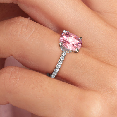 Der oben gezeigte Platin Verlobungsring wird Crystal CSH 4 genannt. Es ist ein Pavé Solitär Ring, da er einen zentralen Edelstein und ein Band mit Pavé-Fassung hat. Der schicke Pavé Solitär Verlobungsring ist in der Kombination Platin mit Platin und ist mit einem kissen rechteckig 8x6 mm rosa Labordiamant-Mittelstein besetzt und das Band hat eine Pavé-Fassung mit Lab grown Diamant. Jedes Schmuckstück wird hergestellt mit Leidenschaft und Liebe, von einem unserer Meister-Goldschmiede. Um den zentralen Stein noch mehr zu betonen, hat das Band eine Pavé-Fassung mit weiteren rosa Labordiamant. Durch die offenen Krappen kann das Licht aus mehreren Winkeln auf den rosa Labordiamant treffen und der rosa Labordiamant-Ring funkelt noch mehr. Das obere Foto zeigt die leidenschaftlich handgefertigten Details des Rings. Die hohe Positionierung der Mittelstein ist ein echter Blickfang. Der perfekte Verlobungsring für das Kronjuwel Ihres Lebens!Durch die Kombination modernster Technik mit uralter Handwerkskunst können wir alle Verlobungsringe in unserem eigenen Studio anfertigen. Jedes Schmuckstück wird auf Anfrage gefertigt. Das ist vorteilhaft, weil wir Ihnen dadurch einen Preis anbieten können, den Sie nirgendwo anders finden.Unsere Designer und Goldschmiede arbeiten jeden Tag zusammen und versuchen, neue Schmuckstücke zu kreieren. Vielleicht haben Sie irgendwo einen schönen, schicke Verlobungsring gefunden, nach dem Ihr einzigartiger Ring gestaltet werden kann. Setzen Sie sich mit uns in Verbindung. Wir machen Ihnen ein Angebot, basierend auf einem fairen Preis/Leistungsverhältnis, das Sie begeistern wird.Um es einfacher zu machen, bieten wir eine kostenlose 30-tägige Rücksendung.