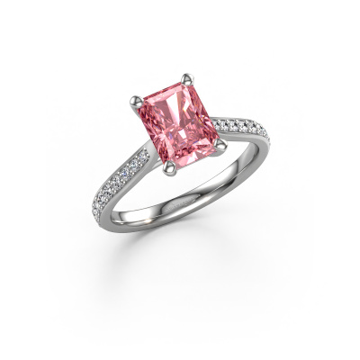 Der oben gezeigte Platin Verlobungsring wird Mignon RAD 2 genannt. Es ist ein Pavé Solitär Ring, da er einen zentralen Edelstein und ein Band mit Pavé-Fassung hat. Der traditionell Pavé Solitär Verlobungsring ist in der Kombination Platin mit Platin und ist mit einem radiant 8x6 mm rosa Labordiamant-Mittelstein besetzt und das Band hat eine Pavé-Fassung mit Lab grown Diamant. Jedes Schmuckstück ist einzigartig in jeder Hinsicht! Einfach nach Ihren Wünschen anzupassen. Um den zentralen Stein noch mehr zu betonen, hat das Band eine Pavé-Fassung mit weiteren rosa Labordiamant. Durch die offenen Krappen kann das Licht aus mehreren Winkeln auf den rosa Labordiamant treffen und der rosa Labordiamant-Ring funkelt noch mehr. Das obere Foto zeigt die leidenschaftlich handgefertigten Details des Rings. Die hohe Positionierung der Mittelstein ist ein echter Blickfang. Der perfekte Verlobungsring für das Kronjuwel Ihres Lebens!Haben Sie ein bestimmtes Budget? Sie können uns gerne kontaktieren, damit wir Ihre Optionen besprechen können. Wir bieten unsere Verlobungsringe zum garantiert besten Preis, denn wir fertigen sie auf Bestellung. Solche Preise finden Sie nirgendwo anders!Haben Sie irgendwo einen bestimmten Verlobungsring gefunden, den Sie Ihrem Liebsten schenken möchten? Sie können uns gerne sagen, was Sie wollen und wir werden Ihr Design in einen Einzigartigen traditionell Verlobungsring verwandeln. Sie können die Entwicklungen Ihres Ringdesigns verfolgen, da wir 3D-Zeichnungen verwenden. Das gibt Ihnen eine realistische Vorschau, wie Ihr Design aussehen wird. Sie können auch einen Dummy vorbestellen. Ein Dummy ist ein Kunststoffring, der nach Ihrem Ringdesign gestaltet werden kann. Sie können ihn anprobieren und prüfen, ob seine Breite und Größe für Sie geeignet sind. Wir senden Ihnen gerne ein unverbindliches Angebot zu einem fairen Preis/Leistungsverhältnis. Sie werden in Anbetracht der Qualität des Rings und der Edelsteine überrascht sein.Um es einfacher zu machen, bieten wir eine kostenlose 30-tägige Rücksendung.