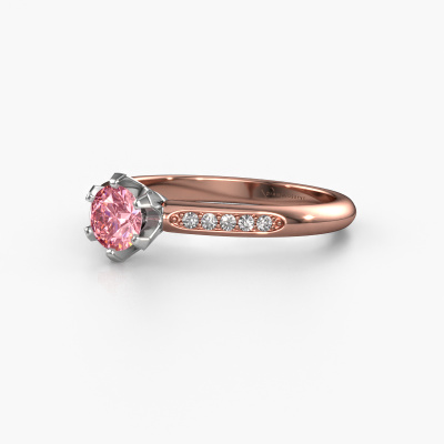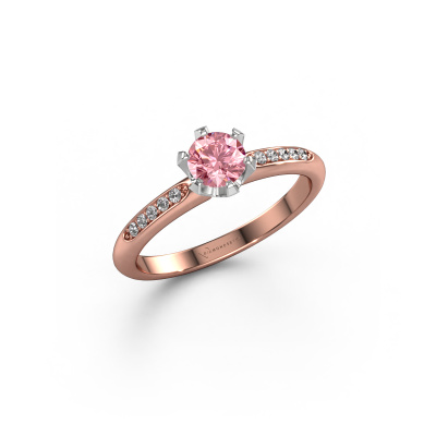 Der oben gezeigte Ring wird Tiffy 2 genannt. Es ist ein Pavé Solitär Ring, da er einen zentralen Edelstein und ein Band mit Pavé-Fassung hat. Dieser 14 Karat Roségold ring ist mit einem 4.7 mm rund rosa Labordiamant-Mittelstein besetzt und das Band hat eine Pavé-Fassung mit Diamanten. Jedes Schmuckstück ist um Ihrem Finger Glanz zu verleihen. Jeder Ring wird von unseren Goldschmieden liebevoll von Hand gefertigt.Dieser traditionell Roségold Pavé Solitär Verlobungsring mit Pavé-Fassung hat einen exquisiten, rund rosa Labordiamant als Mittelstein. Um den zentralen Stein noch mehr zu betonen, hat das Band eine Pavé-Fassung mit weiteren Diamanten. Durch die offenen Krappen kann das Licht aus mehreren Winkeln auf den rosa Labordiamant treffen und der rosa Labordiamant-Ring funkelt noch mehr. Das obere Foto zeigt die leidenschaftlich handgefertigten Details des Rings. Die hohe Positionierung der Mittelstein ist ein echter Blickfang. Der perfekte Verlobungsring für das Kronjuwel Ihres Lebens!Mit unserer modernen Technik können wir Schmuckstücke von höchster Qualität mit größter Sorgfalt für Sie entwerfen und anpassen. Unsere Verlobungsringe sind immer um 30 Prozent günstiger als bei anderen Juwelieren. Wir fertigen Verlobungsringe auf Bestellung, also müssen wir keine großen Lager unterhalten. Wenn Sie ein bestimmtes Budget haben, beraten wir Sie gerne entsprechend.Unsere Designer und Goldschmiede arbeiten jeden Tag zusammen und versuchen, neue Schmuckstücke zu kreieren. Vielleicht haben Sie irgendwo einen schönen, traditionell Verlobungsring gefunden, nach dem Ihr einzigartiger Ring gestaltet werden kann. Setzen Sie sich mit uns in Verbindung. Wir machen Ihnen ein Angebot, basierend auf einem fairen Preis/Leistungsverhältnis, das Sie begeistern wird.Um es einfacher zu machen, bieten wir eine kostenlose 30-tägige Rücksendung.