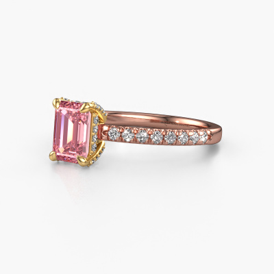 Der oben gezeigte Verlobungsring wird Saskia eme 1 genannt. Wir nennen das einen Solitär-Ring, denn er hat einen einzelnen Edelstein. Es ist ein 14 Karat Roségold ring, mit 7x5 mm smaragd schliff rosa Labordiamant. Das Besondere an unserem Konfigurator ist dass Sie selbst einem Schmuckstück zusammenstellen können zu einem eigenen persönlichen Schmuckstück. Dieser Solitäre Verlobungsring ist gefertigt in der Edelmetall Kombination Roségold mit Gold, aber Sie können also auch wählen aus anderen Farben. Jedes Schmuckstück wird hergestellt mit Leidenschaft und Liebe, von einem unserer Meister-Goldschmiede. Der Solitär-Verlobungsring ist eine Sonderform des Verlobungsring. Seine offenen Krappen ermöglichen, dass Licht aus mehr Winkeln auf den Edelstein trifft. Dieser exklusive Verlobungsring ist durch die hohe Positionierung des Edelsteins ein atemberaubender Blickfang. Wir schmücken diesen Solitär-Ring sorgfältig von Hand, damit Sie Ihren Anfrage mit einem einzigartigen Ring würdigen können. Die Liebe Ihres Lebens verdient nur das Beste. Nach Erhalt Ihrer Bestellung beginnen unsere Goldschmiede mit Leidenschaft den kreativen Prozess und fertigen Ihren Verlobungsring in unserem eigenen Studio. Da wir keine großen Lager haben, werden diese Kosten nicht an Sie weitergegeben. Unsere Preisgestaltung ist der Beweis dafür! Wir bieten Schmuck zum niedrigsten Preis, garantiert.Unser Team fügt unserer Online-Kollektion täglich neue Designs hinzu. Unsere Designer und Goldschmiede arbeiten zusammen, um das beste Design zu kreieren. Wir bemühen uns, eine vielfältige Kollektion von Schmuckstücken anzubieten. Vielleicht haben Sie ein bestimmtes Design im Sinn. Eines, dass Sie irgendwo gesehen haben. Gerne geben wir Ihnen eine kostenlose Beratung. Wir machen Ihnen ein Angebot, basierend auf einem fairen Preis/Leistungsverhältnis, das Sie verblüffen wird.Um es einfacher zu machen, bieten wir eine kostenlose 30-tägige Rücksendung.