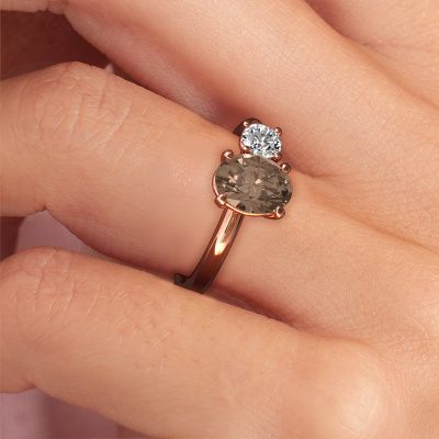 Dieser Verlobungsring aus 14 Karat Roségold heißt Toi et Moi OVL-RND. Suchen Sie nach einem einzigartigen Roségold Verlobungsring mit einem trendigen Aussehen? Dann ist dieser Ring mit Braun Diamant das Richtige für Sie. Einfach nach Ihren Wünschen anpassen. Dieser schicke Verlobungsring ist mit exquisiten Braun Diamant besetzt. Er wurde sorgfältig ausgewählt, weil Ihr zierliche Verlobungsring nur mit dem schönsten Edelstein gekrönt werden darf. Unser erfahrener Juwelier kreiert Ihren Ring in unserem eigenen Studio, wo der Braun Diamant mit großer Sorgfalt eingefasst wird. Der Ring wird dann bearbeitet und poliert, um ihm einen zusätzlichen Glanz zu verleihen. Der perfekte Ring für Ihre bessere Hälfte!Haben Sie ein bestimmtes Budget? Sie können uns gerne kontaktieren, damit wir Ihre Optionen besprechen können. Wir bieten unsere Verlobungsringe zum garantiert besten Preis, denn wir fertigen sie auf Bestellung. Solche Preise finden Sie nirgendwo anders!Haben Sie irgendwo einen bestimmten Verlobungsring gefunden, den Sie Ihrem Liebsten schenken möchten? Sie können uns gerne sagen, was Sie wollen und wir werden Ihr Design in einen Einzigartigen schicke Verlobungsring verwandeln. Sie können die Entwicklungen Ihres Ringdesigns verfolgen, da wir 3D-Zeichnungen verwenden. Das gibt Ihnen eine realistische Vorschau, wie Ihr Design aussehen wird. Sie können auch einen Dummy vorbestellen. Ein Dummy ist ein Kunststoffring, der nach Ihrem Ringdesign gestaltet werden kann. Sie können ihn anprobieren und prüfen, ob seine Breite und Größe für Sie geeignet sind. Wir senden Ihnen gerne ein unverbindliches Angebot zu einem fairen Preis/Leistungsverhältnis. Sie werden in Anbetracht der Qualität des Rings und der Edelsteine überrascht sein.Um es einfacher zu machen, bieten wir eine kostenlose 30-tägige Rücksendung.
