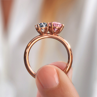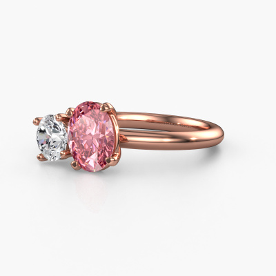 Dieser Verlobungsring aus 14 Karat Roségold heißt Toi et Moi OVL-RND. Suchen Sie nach einem einzigartigen Roségold Verlobungsring mit einem trendigen Aussehen? Dann ist dieser Ring mit rosa Labordiamant das Richtige für Sie. Einfach nach Ihren