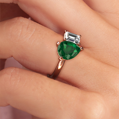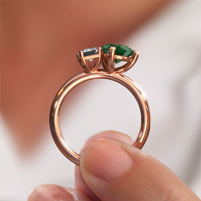 Dieser Verlobungsring aus 14 Karat Roségold heißt Toi et Moi PER-EME. Suchen Sie nach einem einzigartigen Roségold Verlobungsring mit einem trendigen Aussehen? Dann ist dieser Ring mit Smaragd das Richtige für Sie. Einfach nach Ihren Wünschen anpassen. Dieser schicke Verlobungsring ist mit exquisiten Smaragd besetzt. Er wurde sorgfältig ausgewählt, weil Ihr prachtvolle Verlobungsring nur mit dem schönsten Edelstein gekrönt werden darf. Unser erfahrener Juwelier kreiert Ihren Ring in unserem eigenen Studio, wo der Smaragd mit großer Sorgfalt eingefasst wird. Der Ring wird dann bearbeitet und poliert, um ihm einen zusätzlichen Glanz zu verleihen. Der perfekte Ring für Ihre bessere Hälfte!Durch die Kombination modernster Technik mit uralter Handwerkskunst können wir alle Verlobungsringe in unserem eigenen Studio anfertigen. Jedes Schmuckstück wird auf Anfrage gefertigt. Das ist vorteilhaft, weil wir Ihnen dadurch einen Preis anbieten können, den Sie nirgendwo anders finden.Unser Team fügt unserer Online-Kollektion täglich neue Designs hinzu. Unsere Designer und Goldschmiede arbeiten zusammen, um das beste Design zu kreieren. Wir bemühen uns, eine vielfältige Kollektion von Schmuckstücken anzubieten. Vielleicht haben Sie ein bestimmtes Design im Sinn. Eines, dass Sie irgendwo gesehen haben. Gerne geben wir Ihnen eine kostenlose Beratung. Wir machen Ihnen ein Angebot, basierend auf einem fairen Preis/Leistungsverhältnis, das Sie verblüffen wird.Um es einfacher zu machen, bieten wir eine kostenlose 30-tägige Rücksendung.