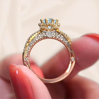 Dieser Verlobungsring aus 14 Karat Roségold heißt Lysanne. Dieser filigrane Roségold Verlobungsring mit 6.5 mm Aquamarin ist ein wahres Kunstwerk! Ein wunderschön geschmücktes Design aus komplizierten Drähten. Mit Hingabe, Geduld und äußerster Präzision werden unsere erfahrenen Juweliere einen Ring nur für Sie entwerfen. Die Verzierungen mit kleinen Drähten werden von Hand in Perfektion gefertigt. Das ist ein langwieriger Prozess, der Schweißen, Werkzeug und Polieren umfasst, bis der erfahrene Juwelier mit dem Ergebnis zufrieden ist: Ein perfekter, auffälliger Ring, der ihn mit Freude zum Strahlen bringt. Deshalb ist der Vintage, filigrane Verlobungsring ein außergewöhnliches Geschenk, um die Liebe Ihres Lebens zu verwöhnen. Ein handgemachter, einzigartiger und personalisierter Ring, den man jemandem in diesem besonderen Moment geben kann, wenn man die eine Frage stellt. Ist das nicht wunderbar? Jedes Schmuckstück wird hergestellt von einem Team leidenschaftlicher Goldschmiede und Schmuckdesigner. Das wird Ihr Kronjuwel unbedingt zu einem Blickfang machen.Nachdem Sie Ihre Bestellung aufgegeben haben, beginnen unsere Goldschmiede mit dem kreativen Prozess der Herstellung Ihres Lysanne Verlobungsring. Wir haben keine Lager. Das ist vorteilhaft, da diese Kosten nicht an Sie weitergegeben werden. Daher sind wir in der Lage, Schmuck zu außergewöhnlich niedrigen Preisen anzubieten.Haben Sie irgendwo einen bestimmten Verlobungsring gefunden, den Sie Ihrem Liebsten schenken möchten? Sie können uns gerne sagen, was Sie wollen und wir werden Ihr Design in einen Einzigartigen Vintage Verlobungsring verwandeln. Sie können die Entwicklungen Ihres Ringdesigns verfolgen, da wir 3D-Zeichnungen verwenden. Das gibt Ihnen eine realistische Vorschau, wie Ihr Design aussehen wird. Sie können auch einen Dummy vorbestellen. Ein Dummy ist ein Kunststoffring, der nach Ihrem Ringdesign gestaltet werden kann. Sie können ihn anprobieren und prüfen, ob seine Breite und Größe für Sie geeignet sind. Wir senden Ihnen gerne ein unverbindliches Angebot zu einem fairen Preis/Leistungsverhältnis. Sie werden in Anbetracht der Qualität des Rings und der Edelsteine überrascht sein.Um es einfacher zu machen, bieten wir eine kostenlose 30-tägige Rücksendung.