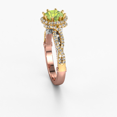 Dieser Verlobungsring aus 14 Karat Roségold heißt Lysanne. Dieser filigrane Roségold Verlobungsring mit 6.5 mm Peridot ist ein wahres Kunstwerk! Ein wunderschön geschmücktes Design aus komplizierten Drähten. Mit Hingabe, Geduld und äußerster Präzision werden unsere erfahrenen Juweliere einen Ring nur für Sie entwerfen. Die Verzierungen mit kleinen Drähten werden von Hand in Perfektion gefertigt. Das ist ein langwieriger Prozess, der Schweißen, Werkzeug und Polieren umfasst, bis der erfahrene Juwelier mit dem Ergebnis zufrieden ist: Ein perfekter, auffälliger Ring, der ihn mit Freude zum Strahlen bringt. Deshalb ist der Vintage, filigrane Verlobungsring ein außergewöhnliches Geschenk, um die Liebe Ihres Lebens zu verwöhnen. Ein handgemachter, einzigartiger und personalisierter Ring, den man jemandem in diesem besonderen Moment geben kann, wenn man die eine Frage stellt. Ist das nicht wunderbar? Jedes Schmuckstück wird hergestellt von einem Team leidenschaftlicher Goldschmiede und Schmuckdesigner. Das wird Ihr Kronjuwel unbedingt zu einem Blickfang machen.Nachdem Sie Ihre Bestellung aufgegeben haben, beginnen unsere Goldschmiede mit dem kreativen Prozess der Herstellung Ihres Lysanne Verlobungsring. Wir haben keine Lager. Das ist vorteilhaft, da diese Kosten nicht an Sie weitergegeben werden. Daher sind wir in der Lage, Schmuck zu außergewöhnlich niedrigen Preisen anzubieten.Haben Sie irgendwo einen bestimmten Verlobungsring gefunden, den Sie Ihrem Liebsten schenken möchten? Sie können uns gerne sagen, was Sie wollen und wir werden Ihr Design in einen Einzigartigen Vintage Verlobungsring verwandeln. Sie können die Entwicklungen Ihres Ringdesigns verfolgen, da wir 3D-Zeichnungen verwenden. Das gibt Ihnen eine realistische Vorschau, wie Ihr Design aussehen wird. Sie können auch einen Dummy vorbestellen. Ein Dummy ist ein Kunststoffring, der nach Ihrem Ringdesign gestaltet werden kann. Sie können ihn anprobieren und prüfen, ob seine Breite und Größe für Sie geeignet sind. Wir senden Ihnen gerne ein unverbindliches Angebot zu einem fairen Preis/Leistungsverhältnis. Sie werden in Anbetracht der Qualität des Rings und der Edelsteine überrascht sein.Um es einfacher zu machen, bieten wir eine kostenlose 30-tägige Rücksendung.