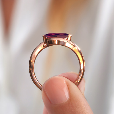 Dieser Verlobungsring aus 14 Karat Roségold mit 11x5.5 mm Rhodolit heißt Aida MRQ. Liebt deine Freundin exklusiven Schmuck? Oder möchten Sie ihr zeigen, dass sie den besten Schmuck verdient? Dieser Roségold Ring ist pure Handwerkskunst - Liebe