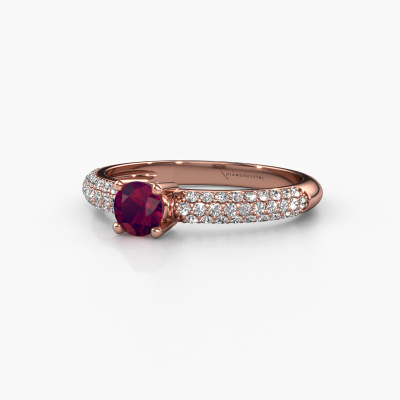 Der oben gezeigte Verlobungsring wird Marjan genannt. Wir nennen das einen Ring mit Pavé-Fassung. Die kleineren Steine des Rings befinden sich in einer geschlossenen Reihe, die für zusätzlichen Glanz sorgt. Dieser Ring aus 14 Karat Roségold ist besetzt mit Rhodolit 4.2 mm. Welche Emotion möchten Sie vermitteln, wenn Sie für sie auf die Knie gehen? Dieser Roségold Verlobungsring ist mit atemberaubenden Rhodolit besetzt, um Ihre ewige Liebe zu repräsentieren. Die Edelsteine werden sorgfältig von Hand ausgewählt und präzise von unserem erfahrenen Goldschmieden gesetzt. Die eindeutige Lichtreflexion auf dem Ring kann nur erfasst werden, wenn die Rhodolit in perfekter Reihe stehen. Beim kunstvollen Schweißen und Polieren des Schmuckstücks wird der Lichteinfall ständig überwacht, bis der erfahrene Juwelier mit dem Ergebnis zufrieden ist. Ein Ring, der nur für Sie entworfen wurde, um Ihre Liebste so hell wie einen Rhodolit erstrahlen zu lassen. Weil es nur eine spezielle Person gibt, die einen so einzigartigen Ring tragen kann! Mit diesem bedeutungsvollen Kunstwerk, dem Symbol der Unendlichkeit, beweisen Sie Ihre unsterbliche Liebe zu ihr und dass Sie den Rest Ihres Lebens mit niemand anderem teilen wollen. Wie kann sie da widerstehen? Jedes Schmuckstück wird nur für Sie persönlich hergestellt, mit Liebe zum Detail und Design.Mit unserer modernen Technik können wir Schmuckstücke von höchster Qualität mit größter Sorgfalt für Sie entwerfen und anpassen. Unsere Verlobungsringe sind immer um 30 Prozent günstiger als bei anderen Juwelieren. Wir fertigen Verlobungsringe auf Bestellung, also müssen wir keine großen Lager unterhalten. Wenn Sie ein bestimmtes Budget haben, beraten wir Sie gerne entsprechend.Haben Sie irgendwo einen bestimmten Verlobungsring gefunden, den Sie Ihrem Liebsten schenken möchten? Sie können uns gerne sagen, was Sie wollen und wir werden Ihr Design in einen Einzigartigen exklusive Verlobungsring verwandeln. Sie können die Entwicklungen Ihres Ringdesigns verfolgen, da wir 3D-Zeichnungen verwenden. Das gibt Ihnen eine realistische Vorschau, wie Ihr Design aussehen wird. Sie können auch einen Dummy vorbestellen. Ein Dummy ist ein Kunststoffring, der nach Ihrem Ringdesign gestaltet werden kann. Sie können ihn anprobieren und prüfen, ob seine Breite und Größe für Sie geeignet sind. Wir senden Ihnen gerne ein unverbindliches Angebot zu einem fairen Preis/Leistungsverhältnis. Sie werden in Anbetracht der Qualität des Rings und der Edelsteine überrascht sein.Um es einfacher zu machen, bieten wir eine kostenlose 30-tägige Rücksendung.