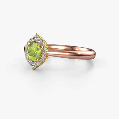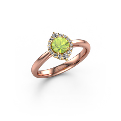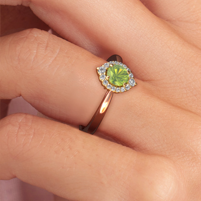 Der oben gezeigte Ring wird Tora genannt. Ein Cluster Ring mit einem zentralen Edelstein, umgeben von kleineren Steinen, wir nennen das einen Cluster Ring. Diese Version in 14 Karat Roségold hat einen 5 mm rund Peridot als Mittelstein, umschlossen von kleineren Lab grown Diamant. Der klassische, Roségold Cluster Verlobungsring zeichnet sich durch seine Form aus. Zusammen bilden die kleineren und größeren Peridot eine Blume und scheinen zu einem großen, funkelnden Edelstein zu verschmelzen. Dieser klassische Verlobungsring wird auch als Blumen- oder Rosettenring bezeichnet. Unsere erfahrenen Juweliere stellen sicher, dass die kleineren Lab grown Diamant identisch gesetzt sind, so dass es an dem Peridot keine Lichtstörungen gibt, sondern sie stattdessen eine Einheit bilden. Mit perfekter Präzision und geschickter Hand wird jeder Peridot in den Ring gesetzt. Während der Herstellung wird alles ständig überwacht, um sicherzustellen, dass das Licht einwandfrei reflektiert wird. Das alles führt zu einem einzigartigen Verlobungsring mit einem strahlenden Peridot in seiner Mitte. Ein schönes, bedeutungsvolles Geschenk, um es der Liebe Ihres Lebens zu schenken. Durch die Kombination modernster Technik mit uralter Handwerkskunst können wir alle Verlobungsringe in unserem eigenen Studio anfertigen. Jedes Schmuckstück wird auf Anfrage gefertigt. Das ist vorteilhaft, weil wir Ihnen dadurch einen Preis anbieten können, den Sie nirgendwo anders finden.Haben Sie irgendwo einen bestimmten Verlobungsring gefunden, den Sie Ihrem Liebsten schenken möchten? Sie können uns gerne sagen, was Sie wollen und wir werden Ihr Design in einen Einzigartigen klassische Verlobungsring verwandeln. Sie können die Entwicklungen Ihres Ringdesigns verfolgen, da wir 3D-Zeichnungen verwenden. Das gibt Ihnen eine realistische Vorschau, wie Ihr Design aussehen wird. Sie können auch einen Dummy vorbestellen. Ein Dummy ist ein Kunststoffring, der nach Ihrem Ringdesign gestaltet werden kann. Sie können ihn anprobieren und prüfen, ob seine Breite und Größe für Sie geeignet sind. Wir senden Ihnen gerne ein unverbindliches Angebot zu einem fairen Preis/Leistungsverhältnis. Sie werden in Anbetracht der Qualität des Rings und der Edelsteine überrascht sein.Um es einfacher zu machen, bieten wir eine kostenlose 30-tägige Rücksendung.