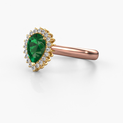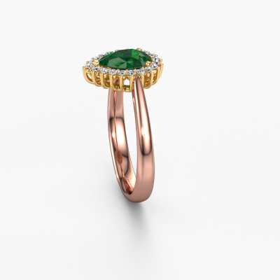 Der oben gezeigte Ring wird Tilly per 1 genannt. Ein Cluster Ring mit einem zentralen Edelstein, umgeben von kleineren Steinen, wir nennen das einen Cluster Ring. Diese Version in 14 Karat Roségold hat einen 8x6 mm tropfen Smaragd als Mittelstein, umschlossen von kleineren Diamanten. Der exklusive, Roségold Cluster Verlobungsring zeichnet sich durch seine Form aus. Zusammen bilden die kleineren und größeren Smaragd eine Blume und scheinen zu einem großen, funkelnden Edelstein zu verschmelzen. Dieser exklusive Verlobungsring wird auch als Blumen- oder Rosettenring bezeichnet. Unsere erfahrenen Juweliere stellen sicher, dass die kleineren Diamanten identisch gesetzt sind, so dass es an dem Smaragd keine Lichtstörungen gibt, sondern sie stattdessen eine Einheit bilden. Mit perfekter Präzision und geschickter Hand wird jeder Smaragd in den Ring gesetzt. Während der Herstellung wird alles ständig überwacht, um sicherzustellen, dass das Licht einwandfrei reflektiert wird. Das alles führt zu einem einzigartigen Verlobungsring mit einem strahlenden Smaragd in seiner Mitte. Ein schönes, bedeutungsvolles Geschenk, um es der Liebe Ihres Lebens zu schenken. Nachdem Sie Ihre Bestellung aufgegeben haben, beginnen unsere Goldschmiede mit dem kreativen Prozess der Herstellung Ihres Tilly per 1 Verlobungsring. Wir haben keine Lager. Das ist vorteilhaft, da diese Kosten nicht an Sie weitergegeben werden. Daher sind wir in der Lage, Schmuck zu außergewöhnlich niedrigen Preisen anzubieten.Unser Team fügt unserer Online-Kollektion täglich neue Designs hinzu. Unsere Designer und Goldschmiede arbeiten zusammen, um das beste Design zu kreieren. Wir bemühen uns, eine vielfältige Kollektion von Schmuckstücken anzubieten. Vielleicht haben Sie ein bestimmtes Design im Sinn. Eines, dass Sie irgendwo gesehen haben. Gerne geben wir Ihnen eine kostenlose Beratung. Wir machen Ihnen ein Angebot, basierend auf einem fairen Preis/Leistungsverhältnis, das Sie verblüffen wird.Um es einfacher zu machen, bieten wir eine kostenlose 30-tägige Rücksendung.