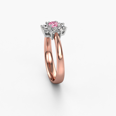 Der oben gezeigte Ring wird Camille 1 genannt. Ein Flower Ring mit einem zentralen Edelstein, umgeben von kleineren Steinen, wir nennen das einen Cluster Ring. Diese Version in 14 Karat Roségold hat einen 3.4 mm rund Pink Saphir als Mittelstein, umschlossen von kleineren Diamanten. Der traditionell, Roségold Flower Verlobungsring zeichnet sich durch seine Form aus. Zusammen bilden die kleineren und größeren Pink Saphir eine Blume und scheinen zu einem großen, funkelnden Edelstein zu verschmelzen. Dieser traditionell Verlobungsring wird auch als Blumen- oder Rosettenring bezeichnet. Unsere erfahrenen Juweliere stellen sicher, dass die kleineren Diamanten identisch gesetzt sind, so dass es an dem Pink Saphir keine Lichtstörungen gibt, sondern sie stattdessen eine Einheit bilden. Mit perfekter Präzision und geschickter Hand wird jeder Pink Saphir in den Ring gesetzt. Während der Herstellung wird alles ständig überwacht, um sicherzustellen, dass das Licht einwandfrei reflektiert wird. Das alles führt zu einem einzigartigen Verlobungsring mit einem strahlenden Pink Saphir in seiner Mitte. Ein schönes, bedeutungsvolles Geschenk, um es der Liebe Ihres Lebens zu schenken. Mit unserer modernen Technik können wir Schmuckstücke von höchster Qualität mit größter Sorgfalt für Sie entwerfen und anpassen. Unsere Verlobungsringe sind immer um 30 Prozent günstiger als bei anderen Juwelieren. Wir fertigen Verlobungsringe auf Bestellung, also müssen wir keine großen Lager unterhalten. Wenn Sie ein bestimmtes Budget haben, beraten wir Sie gerne entsprechend.Unser Team fügt unserer Online-Kollektion täglich neue Designs hinzu. Unsere Designer und Goldschmiede arbeiten zusammen, um das beste Design zu kreieren. Wir bemühen uns, eine vielfältige Kollektion von Schmuckstücken anzubieten. Vielleicht haben Sie ein bestimmtes Design im Sinn. Eines, dass Sie irgendwo gesehen haben. Gerne geben wir Ihnen eine kostenlose Beratung. Wir machen Ihnen ein Angebot, basierend auf einem fairen Preis/Leistungsverhältnis, das Sie verblüffen wird.Um es einfacher zu machen, bieten wir eine kostenlose 30-tägige Rücksendung.