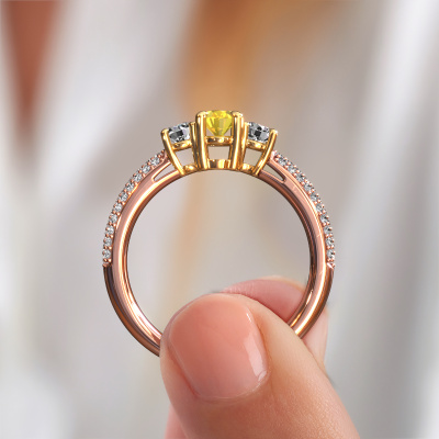 Dieser Verlobungsring aus 14 Karat Roségold mit 6.5x4.5 mm Gelb Saphir heißt Marielle OVL. Liebt deine Freundin exklusiven Schmuck? Oder möchten Sie ihr zeigen, dass sie den besten Schmuck verdient? Dieser Roségold Ring ist pure Handwerkskunst - Liebe und Leidenschaft kombiniert mit den neuesten Techniken, die in perfekter Harmonie zusammentreffen. Es erfordert ein scharfes Auge, Geduld und eine geschickte Hand, um diesen Ring in Perfektion zu formen. Genau der richtige Job für unsere erfahrenen Juweliere! Die Gelb Saphir-Fassung verleiht diesem Roségold Pavé Ring eine extra glänzende Erscheinung. Passen Sie den Stil des Rings nach Ihren Wünschen und mit einer großen Auswahl an Edelmetallen und Edelsteinen an, die Sie selbst auswählen können. So kreieren Sie einen einzigartigen Ring für die exklusivste Frau Ihres Lebens! Jedes Schmuckstück wird von unseren Meister-Goldschmieden in unserem eigenen Studio für Sie gefertigt.Haben Sie ein bestimmtes Budget? Sie können uns gerne kontaktieren, damit wir Ihre Optionen besprechen können. Wir bieten unsere Verlobungsringe zum garantiert besten Preis, denn wir fertigen sie auf Bestellung. Solche Preise finden Sie nirgendwo anders!Haben Sie irgendwo einen bestimmten Verlobungsring gefunden, den Sie Ihrem Liebsten schenken möchten? Sie können uns gerne sagen, was Sie wollen und wir werden Ihr Design in einen Einzigartigen exklusive Verlobungsring verwandeln. Sie können die Entwicklungen Ihres Ringdesigns verfolgen, da wir 3D-Zeichnungen verwenden. Das gibt Ihnen eine realistische Vorschau, wie Ihr Design aussehen wird. Sie können auch einen Dummy vorbestellen. Ein Dummy ist ein Kunststoffring, der nach Ihrem Ringdesign gestaltet werden kann. Sie können ihn anprobieren und prüfen, ob seine Breite und Größe für Sie geeignet sind. Wir senden Ihnen gerne ein unverbindliches Angebot zu einem fairen Preis/Leistungsverhältnis. Sie werden in Anbetracht der Qualität des Rings und der Edelsteine überrascht sein.Um es einfacher zu machen, bieten wir eine kostenlose 30-tägige Rücksendung.
