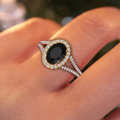 Dieser Verlobungsring aus 14 Karat Roségold mit 1.40 crt Schwarz Diamant heißt Verla ovl 2. Liebt deine Freundin exklusiven Schmuck? Oder möchten Sie ihr zeigen, dass sie den besten Schmuck verdient? Dieser Roségold Ring ist pure Handwerkskunst - Liebe und Leidenschaft kombiniert mit den neuesten Techniken, die in perfekter Harmonie zusammentreffen. Es erfordert ein scharfes Auge, Geduld und eine geschickte Hand, um diesen Ring in Perfektion zu formen. Genau der richtige Job für unsere erfahrenen Juweliere! Die Schwarze Diamanten-Fassung verleiht diesem Roségold gespaltene Bänder Ring eine extra glänzende Erscheinung. Passen Sie den Stil des Rings nach Ihren Wünschen und mit einer großen Auswahl an Edelmetallen und Edelsteinen an, die Sie selbst auswählen können. So kreieren Sie einen einzigartigen Ring für die exklusivste Frau Ihres Lebens! Jedes Schmuckstück wird hergestellt von einem Team leidenschaftlicher Goldschmiede und Schmuckdesigner. Das wird Ihr Kronjuwel unbedingt zu einem Blickfang machen.Mit unserer modernen Technik können wir Schmuckstücke von höchster Qualität mit größter Sorgfalt für Sie entwerfen und anpassen. Unsere Verlobungsringe sind immer um 30 Prozent günstiger als bei anderen Juwelieren. Wir fertigen Verlobungsringe auf Bestellung, also müssen wir keine großen Lager unterhalten. Wenn Sie ein bestimmtes Budget haben, beraten wir Sie gerne entsprechend.Unser Team fügt unserer Online-Kollektion täglich neue Designs hinzu. Unsere Designer und Goldschmiede arbeiten zusammen, um das beste Design zu kreieren. Wir bemühen uns, eine vielfältige Kollektion von Schmuckstücken anzubieten. Vielleicht haben Sie ein bestimmtes Design im Sinn. Eines, dass Sie irgendwo gesehen haben. Gerne geben wir Ihnen eine kostenlose Beratung. Wir machen Ihnen ein Angebot, basierend auf einem fairen Preis/Leistungsverhältnis, das Sie verblüffen wird.Um es einfacher zu machen, bieten wir eine kostenlose 30-tägige Rücksendung.