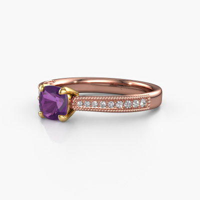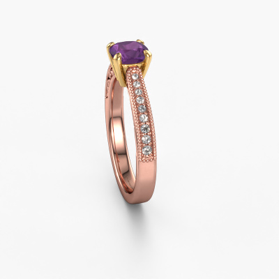 Dieser Verlobungsring aus 14 Karat Roségold heißt Shonta CUS. Dieser filigrane Roségold Verlobungsring mit 5.5 mm Amethyst ist ein wahres Kunstwerk! Ein wunderschön geschmücktes Design aus komplizierten Drähten. Mit Hingabe, Geduld und äußerster Präzision werden unsere erfahrenen Juweliere einen Ring nur für Sie entwerfen. Die Verzierungen mit kleinen Drähten werden von Hand in Perfektion gefertigt. Das ist ein langwieriger Prozess, der Schweißen, Werkzeug und Polieren umfasst, bis der erfahrene Juwelier mit dem Ergebnis zufrieden ist: Ein perfekter, auffälliger Ring, der ihn mit Freude zum Strahlen bringt. Deshalb ist der Vintage, filigrane Verlobungsring ein außergewöhnliches Geschenk, um die Liebe Ihres Lebens zu verwöhnen. Ein handgemachter, einzigartiger und personalisierter Ring, den man jemandem in diesem besonderen Moment geben kann, wenn man die eine Frage stellt. Ist das nicht wunderbar? Jedes Schmuckstück ist um Ihrem Finger Glanz zu verleihen. Jeder Ring wird von unseren Goldschmieden liebevoll von Hand gefertigt.Nachdem Sie Ihre Bestellung aufgegeben haben, beginnen unsere Goldschmiede mit dem kreativen Prozess der Herstellung Ihres Shonta CUS Verlobungsring. Wir haben keine Lager. Das ist vorteilhaft, da diese Kosten nicht an Sie weitergegeben werden. Daher sind wir in der Lage, Schmuck zu außergewöhnlich niedrigen Preisen anzubieten.Unsere Designer und Goldschmiede arbeiten jeden Tag zusammen und versuchen, neue Schmuckstücke zu kreieren. Vielleicht haben Sie irgendwo einen schönen, Vintage Verlobungsring gefunden, nach dem Ihr einzigartiger Ring gestaltet werden kann. Setzen Sie sich mit uns in Verbindung. Wir machen Ihnen ein Angebot, basierend auf einem fairen Preis/Leistungsverhältnis, das Sie begeistern wird.Um es einfacher zu machen, bieten wir eine kostenlose 30-tägige Rücksendung.