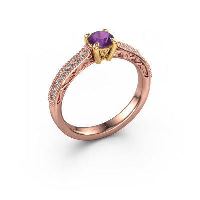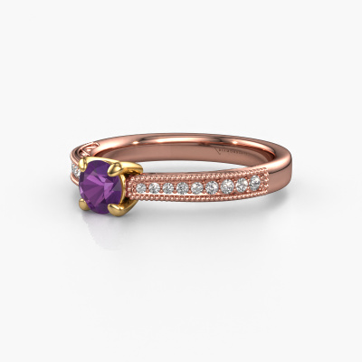 Dieser Verlobungsring aus 14 Karat Roségold heißt Shonta RND. Dieser filigrane Roségold Verlobungsring mit 4.7 mm Amethyst ist ein wahres Kunstwerk! Ein wunderschön geschmücktes Design aus komplizierten Drähten. Mit Hingabe, Geduld und äußerster Präzision werden unsere erfahrenen Juweliere einen Ring nur für Sie entwerfen. Die Verzierungen mit kleinen Drähten werden von Hand in Perfektion gefertigt. Das ist ein langwieriger Prozess, der Schweißen, Werkzeug und Polieren umfasst, bis der erfahrene Juwelier mit dem Ergebnis zufrieden ist: Ein perfekter, auffälliger Ring, der ihn mit Freude zum Strahlen bringt. Deshalb ist der Vintage, filigrane Verlobungsring ein außergewöhnliches Geschenk, um die Liebe Ihres Lebens zu verwöhnen. Ein handgemachter, einzigartiger und personalisierter Ring, den man jemandem in diesem besonderen Moment geben kann, wenn man die eine Frage stellt. Ist das nicht wunderbar? Jedes Schmuckstück wird von unseren Meister-Goldschmieden in unserem eigenen Studio für Sie gefertigt.Mit unserer modernen Technik können wir Schmuckstücke von höchster Qualität mit größter Sorgfalt für Sie entwerfen und anpassen. Unsere Verlobungsringe sind immer um 30 Prozent günstiger als bei anderen Juwelieren. Wir fertigen Verlobungsringe auf Bestellung, also müssen wir keine großen Lager unterhalten. Wenn Sie ein bestimmtes Budget haben, beraten wir Sie gerne entsprechend.Unser Team fügt unserer Online-Kollektion täglich neue Designs hinzu. Unsere Designer und Goldschmiede arbeiten zusammen, um das beste Design zu kreieren. Wir bemühen uns, eine vielfältige Kollektion von Schmuckstücken anzubieten. Vielleicht haben Sie ein bestimmtes Design im Sinn. Eines, dass Sie irgendwo gesehen haben. Gerne geben wir Ihnen eine kostenlose Beratung. Wir machen Ihnen ein Angebot, basierend auf einem fairen Preis/Leistungsverhältnis, das Sie verblüffen wird.Um es einfacher zu machen, bieten wir eine kostenlose 30-tägige Rücksendung.