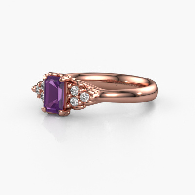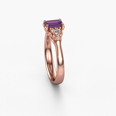 Dieser Verlobungsring aus 14 Karat Roségold heißt Myrna EME. Dieser filigrane Roségold Verlobungsring mit 6x4 mm Amethyst ist ein wahres Kunstwerk! Ein wunderschön geschmücktes Design aus komplizierten Drähten. Mit Hingabe, Geduld und äußerster Präzision werden unsere erfahrenen Juweliere einen Ring nur für Sie entwerfen. Die Verzierungen mit kleinen Drähten werden von Hand in Perfektion gefertigt. Das ist ein langwieriger Prozess, der Schweißen, Werkzeug und Polieren umfasst, bis der erfahrene Juwelier mit dem Ergebnis zufrieden ist: Ein perfekter, auffälliger Ring, der ihn mit Freude zum Strahlen bringt. Deshalb ist der Vintage, filigrane Verlobungsring ein außergewöhnliches Geschenk, um die Liebe Ihres Lebens zu verwöhnen. Ein handgemachter, einzigartiger und personalisierter Ring, den man jemandem in diesem besonderen Moment geben kann, wenn man die eine Frage stellt. Ist das nicht wunderbar? Jedes Schmuckstück ist einzigartig in jeder Hinsicht! Einfach nach Ihren Wünschen anzupassen.Mit unserer modernen Technik können wir Schmuckstücke von höchster Qualität mit größter Sorgfalt für Sie entwerfen und anpassen. Unsere Verlobungsringe sind immer um 30 Prozent günstiger als bei anderen Juwelieren. Wir fertigen Verlobungsringe auf Bestellung, also müssen wir keine großen Lager unterhalten. Wenn Sie ein bestimmtes Budget haben, beraten wir Sie gerne entsprechend.Haben Sie irgendwo einen bestimmten Verlobungsring gefunden, den Sie Ihrem Liebsten schenken möchten? Sie können uns gerne sagen, was Sie wollen und wir werden Ihr Design in einen Einzigartigen Vintage Verlobungsring verwandeln. Sie können die Entwicklungen Ihres Ringdesigns verfolgen, da wir 3D-Zeichnungen verwenden. Das gibt Ihnen eine realistische Vorschau, wie Ihr Design aussehen wird. Sie können auch einen Dummy vorbestellen. Ein Dummy ist ein Kunststoffring, der nach Ihrem Ringdesign gestaltet werden kann. Sie können ihn anprobieren und prüfen, ob seine Breite und Größe für Sie geeignet sind. Wir senden Ihnen gerne ein unverbindliches Angebot zu einem fairen Preis/Leistungsverhältnis. Sie werden in Anbetracht der Qualität des Rings und der Edelsteine überrascht sein.Um es einfacher zu machen, bieten wir eine kostenlose 30-tägige Rücksendung.