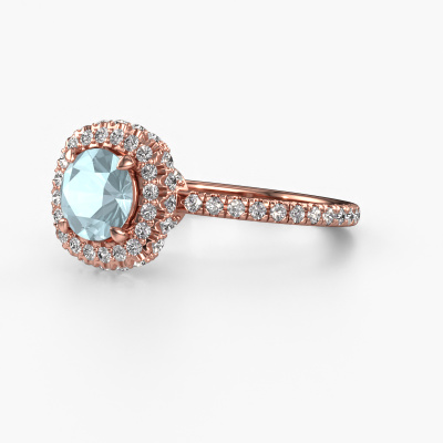 Der oben gezeigte Verlobungsring wird Talitha RND genannt. Es ist ein Halo Ring, da er einen zentralen Edelstein und ein Band mit Pavé-Fassung hat. Der 14 Karat Roségold ring ist mit einem 6.5 mm rund Aquamarin-Mittelstein besetzt und um ihn herum eine Pavé-Fassung mit Lab grown Diamant. Was diesen exklusive, Roségold Halo Ring besonders macht, sind die kleineren Steine, die den zentralen Stein umschließen. Dieser wunderschöne Verlobungsring wird als Halo Ring bezeichnet, da die kleineren Edelsteine dem zentralen Stein einen Lichthof geben. Damit die kleineren Steine den Mittelstein verstärken, müssen sie so platziert werden, dass keine Lichteinflüsse auftreten. Und hier kommen unsere erfahrenen Goldschmiede ins Spiel. Jeder einzelne Stein wird sorgfältig von Hand in den Ring gesetzt. Während der Herstellung wird der Lichteinfall ständig überprüft. So können wir sicherstellen, dass der spezielle Lichtkranz noch sichtbar ist. Am Ende erhalten Sie einen einzigartigen Verlobungsring mit einem Aquamarins Ihrer Wahl in der Mitte. Sie können sich die Wirkung eines solchen Ringes vorstellen, wenn Sie ihn an ihrem besonderen Tag für sie zum Leuchten bringen. Haben Sie ein bestimmtes Budget? Sie können uns gerne kontaktieren, damit wir Ihre Optionen besprechen können. Wir bieten unsere Verlobungsringe zum garantiert besten Preis, denn wir fertigen sie auf Bestellung. Solche Preise finden Sie nirgendwo anders!Unser Team fügt unserer Online-Kollektion täglich neue Designs hinzu. Unsere Designer und Goldschmiede arbeiten zusammen, um das beste Design zu kreieren. Wir bemühen uns, eine vielfältige Kollektion von Schmuckstücken anzubieten. Vielleicht haben Sie ein bestimmtes Design im Sinn. Eines, dass Sie irgendwo gesehen haben. Gerne geben wir Ihnen eine kostenlose Beratung. Wir machen Ihnen ein Angebot, basierend auf einem fairen Preis/Leistungsverhältnis, das Sie verblüffen wird.Um es einfacher zu machen, bieten wir eine kostenlose 30-tägige Rücksendung.