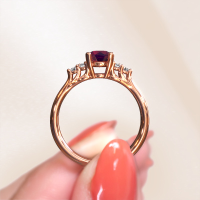 Dieser Verlobungsring aus 14 Karat Roségold mit 5.5 mm Rhodolit heißt Monika RND. Liebt deine Freundin exklusiven Schmuck? Oder möchten Sie ihr zeigen, dass sie den besten Schmuck verdient? Dieser Roségold Ring ist pure Handwerkskunst - Liebe und Leidenschaft kombiniert mit den neuesten Techniken, die in perfekter Harmonie zusammentreffen. Es erfordert ein scharfes Auge, Geduld und eine geschickte Hand, um diesen Ring in Perfektion zu formen. Genau der richtige Job für unsere erfahrenen Juweliere! Die Rhodolit-Fassung verleiht diesem Roségold ajour Ring eine extra glänzende Erscheinung. Passen Sie den Stil des Rings nach Ihren Wünschen und mit einer großen Auswahl an Edelmetallen und Edelsteinen an, die Sie selbst auswählen können. So kreieren Sie einen einzigartigen Ring für die exklusivste Frau Ihres Lebens! Jedes Schmuckstück wird hergestellt mit Leidenschaft und Liebe, von einem unserer Meister-Goldschmiede.Haben Sie ein bestimmtes Budget? Sie können uns gerne kontaktieren, damit wir Ihre Optionen besprechen können. Wir bieten unsere Verlobungsringe zum garantiert besten Preis, denn wir fertigen sie auf Bestellung. Solche Preise finden Sie nirgendwo anders!Haben Sie irgendwo einen bestimmten Verlobungsring gefunden, den Sie Ihrem Liebsten schenken möchten? Sie können uns gerne sagen, was Sie wollen und wir werden Ihr Design in einen Einzigartigen klassische Verlobungsring verwandeln. Sie können die Entwicklungen Ihres Ringdesigns verfolgen, da wir 3D-Zeichnungen verwenden. Das gibt Ihnen eine realistische Vorschau, wie Ihr Design aussehen wird. Sie können auch einen Dummy vorbestellen. Ein Dummy ist ein Kunststoffring, der nach Ihrem Ringdesign gestaltet werden kann. Sie können ihn anprobieren und prüfen, ob seine Breite und Größe für Sie geeignet sind. Wir senden Ihnen gerne ein unverbindliches Angebot zu einem fairen Preis/Leistungsverhältnis. Sie werden in Anbetracht der Qualität des Rings und der Edelsteine überrascht sein.Um es einfacher zu machen, bieten wir eine kostenlose 30-tägige Rücksendung.