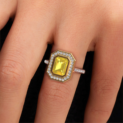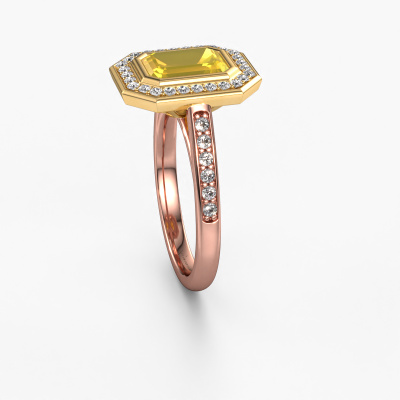 Dieser Verlobungsring aus 14 Karat Roségold mit 8x6 mm Gelb Saphir heißt Noud 2 EME. Liebt deine Freundin exklusiven Schmuck? Oder möchten Sie ihr zeigen, dass sie den besten Schmuck verdient? Dieser Roségold Ring ist pure Handwerkskunst - Liebe und Leidenschaft kombiniert mit den neuesten Techniken, die in perfekter Harmonie zusammentreffen. Es erfordert ein scharfes Auge, Geduld und eine geschickte Hand, um diesen Ring in Perfektion zu formen. Genau der richtige Job für unsere erfahrenen Juweliere! Die Gelb Saphir-Fassung verleiht diesem Roségold Pavé Ring eine extra glänzende Erscheinung. Passen Sie den Stil des Rings nach Ihren Wünschen und mit einer großen Auswahl an Edelmetallen und Edelsteinen an, die Sie selbst auswählen können. So kreieren Sie einen einzigartigen Ring für die exklusivste Frau Ihres Lebens! Jedes Schmuckstück ist um Ihrem Finger Glanz zu verleihen. Jeder Ring wird von unseren Goldschmieden liebevoll von Hand gefertigt.Nachdem Sie Ihre Bestellung aufgegeben haben, beginnen unsere Goldschmiede mit dem kreativen Prozess der Herstellung Ihres Noud 2 EME Verlobungsring. Wir haben keine Lager. Das ist vorteilhaft, da diese Kosten nicht an Sie weitergegeben werden. Daher sind wir in der Lage, Schmuck zu außergewöhnlich niedrigen Preisen anzubieten.Haben Sie irgendwo einen bestimmten Verlobungsring gefunden, den Sie Ihrem Liebsten schenken möchten? Sie können uns gerne sagen, was Sie wollen und wir werden Ihr Design in einen Einzigartigen exklusive Verlobungsring verwandeln. Sie können die Entwicklungen Ihres Ringdesigns verfolgen, da wir 3D-Zeichnungen verwenden. Das gibt Ihnen eine realistische Vorschau, wie Ihr Design aussehen wird. Sie können auch einen Dummy vorbestellen. Ein Dummy ist ein Kunststoffring, der nach Ihrem Ringdesign gestaltet werden kann. Sie können ihn anprobieren und prüfen, ob seine Breite und Größe für Sie geeignet sind. Wir senden Ihnen gerne ein unverbindliches Angebot zu einem fairen Preis/Leistungsverhältnis. Sie werden in Anbetracht der Qualität des Rings und der Edelsteine überrascht sein.Um es einfacher zu machen, bieten wir eine kostenlose 30-tägige Rücksendung.