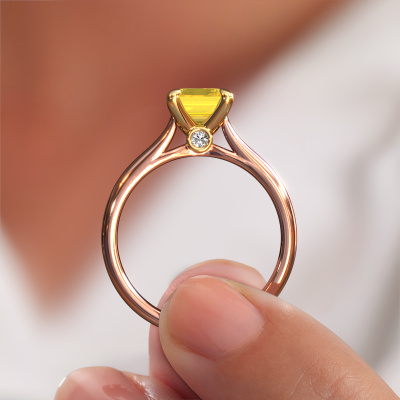 Dieser Verlobungsring aus 14 Karat Roségold mit 9x7 mm Gelb Saphir heißt Valorie eme 1. Liebt deine Freundin exklusiven Schmuck? Oder möchten Sie ihr zeigen, dass sie den besten Schmuck verdient? Dieser Roségold Ring ist pure Handwerkskunst - Liebe und Leidenschaft kombiniert mit den neuesten Techniken, die in perfekter Harmonie zusammentreffen. Es erfordert ein scharfes Auge, Geduld und eine geschickte Hand, um diesen Ring in Perfektion zu formen. Genau der richtige Job für unsere erfahrenen Juweliere! Die Gelb Saphir-Fassung verleiht diesem Roségold raffinierte Ring eine extra glänzende Erscheinung. Passen Sie den Stil des Rings nach Ihren Wünschen und mit einer großen Auswahl an Edelmetallen und Edelsteinen an, die Sie selbst auswählen können. So kreieren Sie einen einzigartigen Ring für die exklusivste Frau Ihres Lebens! Jedes Schmuckstück wird nur für Sie persönlich hergestellt, mit Liebe zum Detail und Design.Mit unserer modernen Technik können wir Schmuckstücke von höchster Qualität mit größter Sorgfalt für Sie entwerfen und anpassen. Unsere Verlobungsringe sind immer um 30 Prozent günstiger als bei anderen Juwelieren. Wir fertigen Verlobungsringe auf Bestellung, also müssen wir keine großen Lager unterhalten. Wenn Sie ein bestimmtes Budget haben, beraten wir Sie gerne entsprechend.Verschiedene Arten von neuen Ringen werden täglich von unserem Team angefertigt. Vielleicht haben Sie irgendwo einen Solitär Verlobungsring gefunden. Einen, den Sie Ihrem Liebsten schenken möchten. Bitte zögern Sie nicht, unseren Schmuckdesignern Ihre Gedanken und Ihr Design zu zeigen. Wir würden gerne Ihr Design in einen exklusive Verlobungsring verwandeln. Sie können die Entwicklungen Ihres Ringdesigns verfolgen, da wir sehr detaillierte 3D-Zeichnungen verwenden. Darüber hinaus können Sie einen Dummy des Designs bestellen. Ein Dummy ist ein Kunststoffring, der nach Ihrem Ringdesign gestaltet werden kann. Sie können ihn anprobieren und prüfen, ob der Verlobungsring Ihren Vorstellungen entspricht. Wir senden Ihnen gerne ein unverbindliches Angebot zu einem fairen Preis/Leistungsverhältnis. Das Angebot wird Sie angesichts der Qualität des Rings und der Edelsteine verblüffen.Um es einfacher zu machen, bieten wir eine kostenlose 30-tägige Rücksendung.