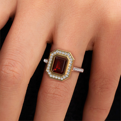 Dieser Verlobungsring aus 14 Karat Roségold mit 8x6 mm Granat heißt Noud 2 EME. Liebt deine Freundin exklusiven Schmuck? Oder möchten Sie ihr zeigen, dass sie den besten Schmuck verdient? Dieser Roségold Ring ist pure Handwerkskunst - Liebe und Leidenschaft kombiniert mit den neuesten Techniken, die in perfekter Harmonie zusammentreffen. Es erfordert ein scharfes Auge, Geduld und eine geschickte Hand, um diesen Ring in Perfektion zu formen. Genau der richtige Job für unsere erfahrenen Juweliere! Die Granat-Fassung verleiht diesem Roségold Pavé Ring eine extra glänzende Erscheinung. Passen Sie den Stil des Rings nach Ihren Wünschen und mit einer großen Auswahl an Edelmetallen und Edelsteinen an, die Sie selbst auswählen können. So kreieren Sie einen einzigartigen Ring für die exklusivste Frau Ihres Lebens! Jedes Schmuckstück ist um Ihrem Finger Glanz zu verleihen. Jeder Ring wird von unseren Goldschmieden liebevoll von Hand gefertigt.Nachdem Sie Ihre Bestellung aufgegeben haben, beginnen unsere Goldschmiede mit dem kreativen Prozess der Herstellung Ihres Noud 2 EME Verlobungsring. Wir haben keine Lager. Das ist vorteilhaft, da diese Kosten nicht an Sie weitergegeben werden. Daher sind wir in der Lage, Schmuck zu außergewöhnlich niedrigen Preisen anzubieten.Haben Sie irgendwo einen bestimmten Verlobungsring gefunden, den Sie Ihrem Liebsten schenken möchten? Sie können uns gerne sagen, was Sie wollen und wir werden Ihr Design in einen Einzigartigen exklusive Verlobungsring verwandeln. Sie können die Entwicklungen Ihres Ringdesigns verfolgen, da wir 3D-Zeichnungen verwenden. Das gibt Ihnen eine realistische Vorschau, wie Ihr Design aussehen wird. Sie können auch einen Dummy vorbestellen. Ein Dummy ist ein Kunststoffring, der nach Ihrem Ringdesign gestaltet werden kann. Sie können ihn anprobieren und prüfen, ob seine Breite und Größe für Sie geeignet sind. Wir senden Ihnen gerne ein unverbindliches Angebot zu einem fairen Preis/Leistungsverhältnis. Sie werden in Anbetracht der Qualität des Rings und der Edelsteine überrascht sein.Um es einfacher zu machen, bieten wir eine kostenlose 30-tägige Rücksendung.