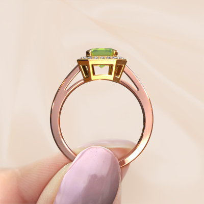 Dieser Verlobungsring aus 14 Karat Roségold mit 8x6 mm Peridot heißt Dodie 1 eme. Liebt deine Freundin exklusiven Schmuck? Oder möchten Sie ihr zeigen, dass sie den besten Schmuck verdient? Dieser Roségold Ring ist pure Handwerkskunst - Liebe und Leidenschaft kombiniert mit den neuesten Techniken, die in perfekter Harmonie zusammentreffen. Es erfordert ein scharfes Auge, Geduld und eine geschickte Hand, um diesen Ring in Perfektion zu formen. Genau der richtige Job für unsere erfahrenen Juweliere! Die Peridot-Fassung verleiht diesem Roségold besondere Ring eine extra glänzende Erscheinung. Passen Sie den Stil des Rings nach Ihren Wünschen und mit einer großen Auswahl an Edelmetallen und Edelsteinen an, die Sie selbst auswählen können. So kreieren Sie einen einzigartigen Ring für die exklusivste Frau Ihres Lebens! Jedes Schmuckstück lässt Ihren Finger erstrahlen. Ihr Ring ist mit Liebe von unseren Goldschmieden handgefertigt.Nachdem Sie Ihre Bestellung aufgegeben haben, beginnen unsere Goldschmiede mit dem kreativen Prozess der Herstellung Ihres Dodie 1 eme Verlobungsring. Wir haben keine Lager. Das ist vorteilhaft, da diese Kosten nicht an Sie weitergegeben werden. Daher sind wir in der Lage, Schmuck zu außergewöhnlich niedrigen Preisen anzubieten.Unser Team fügt unserer Online-Kollektion täglich neue Designs hinzu. Unsere Designer und Goldschmiede arbeiten zusammen, um das beste Design zu kreieren. Wir bemühen uns, eine vielfältige Kollektion von Schmuckstücken anzubieten. Vielleicht haben Sie ein bestimmtes Design im Sinn. Eines, dass Sie irgendwo gesehen haben. Gerne geben wir Ihnen eine kostenlose Beratung. Wir machen Ihnen ein Angebot, basierend auf einem fairen Preis/Leistungsverhältnis, das Sie verblüffen wird.Um es einfacher zu machen, bieten wir eine kostenlose 30-tägige Rücksendung.