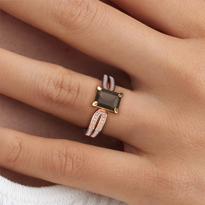 Dieser Verlobungsring aus 14 Karat Roségold mit 8x6 mm Rauchquarz heißt Antonia eme 2. Liebt deine Freundin exklusiven Schmuck? Oder möchten Sie ihr zeigen, dass sie den besten Schmuck verdient? Dieser Roségold Ring ist pure Handwerkskunst - Liebe und Leidenschaft kombiniert mit den neuesten Techniken, die in perfekter Harmonie zusammentreffen. Es erfordert ein scharfes Auge, Geduld und eine geschickte Hand, um diesen Ring in Perfektion zu formen. Genau der richtige Job für unsere erfahrenen Juweliere! Die Rauchquarz-Fassung verleiht diesem Roségold gespaltene Bänder Ring eine extra glänzende Erscheinung. Passen Sie den Stil des Rings nach Ihren Wünschen und mit einer großen Auswahl an Edelmetallen und Edelsteinen an, die Sie selbst auswählen können. So kreieren Sie einen einzigartigen Ring für die exklusivste Frau Ihres Lebens! Jedes Schmuckstück lässt Ihren Finger erstrahlen. Ihr Ring ist mit Liebe von unseren Goldschmieden handgefertigt.Nachdem Sie Ihre Bestellung aufgegeben haben, beginnen unsere Goldschmiede mit dem kreativen Prozess der Herstellung Ihres Antonia eme 2 Verlobungsring. Wir haben keine Lager. Das ist vorteilhaft, da diese Kosten nicht an Sie weitergegeben werden. Daher sind wir in der Lage, Schmuck zu außergewöhnlich niedrigen Preisen anzubieten.Haben Sie einen bestimmten Ring im Sinn? Eines, dass Sie irgendwo gesehen haben. Bitte zögern Sie nicht, uns zu sagen, was Sie wollen und wir werden Ihr Design in einen Einzigartigen Verlobungsring verwandeln. Sie können die Entwicklungen Ihres Ringdesigns verfolgen, da wir 3D-Zeichnungen verwenden. Das gibt Ihnen eine realistische Vorschau Ihres Designs. Wir senden Ihnen gerne ein unverbindliches Angebot zu einem fairen Preis/Leistungsverhältnis. Es wird Sie erstaunen.Um es einfacher zu machen, bieten wir eine kostenlose 30-tägige Rücksendung.