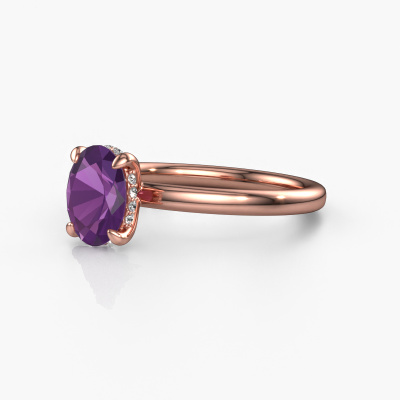 Dieser Verlobungsring aus 14 Karat Roségold heißt Simone OVL 2. Suchen Sie nach einem einzigartigen Roségold Verlobungsring mit einem trendigen Aussehen? Dann ist dieser Ring mit Amethyst das Richtige für Sie. Einfach nach Ihren Wünschen anpassen. Dieser moderne Verlobungsring ist mit exquisiten Amethyst besetzt. Er wurde sorgfältig ausgewählt, weil Ihr graziöse Verlobungsring nur mit dem schönsten Edelstein gekrönt werden darf. Unser erfahrener Juwelier kreiert Ihren Ring in unserem eigenen Studio, wo der Amethyst mit großer Sorgfalt eingefasst wird. Der Ring wird dann bearbeitet und poliert, um ihm einen zusätzlichen Glanz zu verleihen. Der perfekte Ring für Ihre bessere Hälfte!Da wir unsere eigenen Ringe entwerfen und liefern, können wir Ihnen einen Verlobungsring zu einem Preis anbieten, den Sie nirgendwo anders finden. Ein Ring wird auf Bestellung angefertigt, wodurch kein überschüssiges Material anfällt. So können wir Ihnen ein gutes Angebot zum besten Preis machen. Wir verstehen, dass es sich riskant anfühlt, Ihren Verlobungsring online zu kaufen. Jedoch helfen wir Ihnen gerne beim Designprozess unter Berücksichtigung Ihres Budgets.Haben Sie einen bestimmten Ring im Sinn? Eines, dass Sie irgendwo gesehen haben. Bitte zögern Sie nicht, uns zu sagen, was Sie wollen und wir werden Ihr Design in einen Einzigartigen Verlobungsring verwandeln. Sie können die Entwicklungen Ihres Ringdesigns verfolgen, da wir 3D-Zeichnungen verwenden. Das gibt Ihnen eine realistische Vorschau Ihres Designs. Wir senden Ihnen gerne ein unverbindliches Angebot zu einem fairen Preis/Leistungsverhältnis. Es wird Sie erstaunen.Um es einfacher zu machen, bieten wir eine kostenlose 30-tägige Rücksendung.