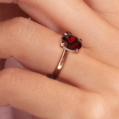 Dieser Verlobungsring aus 14 Karat Roségold heißt Simone OVL 2. Suchen Sie nach einem einzigartigen Roségold Verlobungsring mit einem trendigen Aussehen? Dann ist dieser Ring mit Granat das Richtige für Sie. Einfach nach Ihren Wünschen anpassen. Dieser moderne Verlobungsring ist mit exquisiten Granat besetzt. Er wurde sorgfältig ausgewählt, weil Ihr graziöse Verlobungsring nur mit dem schönsten Edelstein gekrönt werden darf. Unser erfahrener Juwelier kreiert Ihren Ring in unserem eigenen Studio, wo der Granat mit großer Sorgfalt eingefasst wird. Der Ring wird dann bearbeitet und poliert, um ihm einen zusätzlichen Glanz zu verleihen. Der perfekte Ring für Ihre bessere Hälfte!Da wir unsere eigenen Ringe entwerfen und liefern, können wir Ihnen einen Verlobungsring zu einem Preis anbieten, den Sie nirgendwo anders finden. Ein Ring wird auf Bestellung angefertigt, wodurch kein überschüssiges Material anfällt. So können wir Ihnen ein gutes Angebot zum besten Preis machen. Wir verstehen, dass es sich riskant anfühlt, Ihren Verlobungsring online zu kaufen. Jedoch helfen wir Ihnen gerne beim Designprozess unter Berücksichtigung Ihres Budgets.Haben Sie einen bestimmten Ring im Sinn? Eines, dass Sie irgendwo gesehen haben. Bitte zögern Sie nicht, uns zu sagen, was Sie wollen und wir werden Ihr Design in einen Einzigartigen Verlobungsring verwandeln. Sie können die Entwicklungen Ihres Ringdesigns verfolgen, da wir 3D-Zeichnungen verwenden. Das gibt Ihnen eine realistische Vorschau Ihres Designs. Wir senden Ihnen gerne ein unverbindliches Angebot zu einem fairen Preis/Leistungsverhältnis. Es wird Sie erstaunen.Um es einfacher zu machen, bieten wir eine kostenlose 30-tägige Rücksendung.