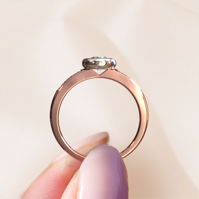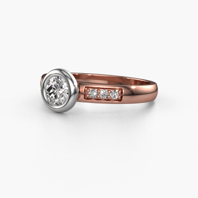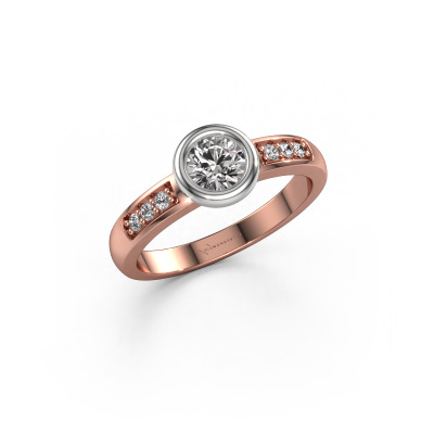 Der oben gezeigte Roségold Verlobungsring wird Lieke genannt. Es ist ein Pavé Solitär Ring, da er einen zentralen Edelstein und ein Band mit Pavé-Fassung hat. Der klassische Pavé Solitär Verlobungsring ist in der Kombination 14 Karat Roségold mit Weißgold und ist mit einem rund 0.40 crt Diamant-Mittelstein besetzt und das Band hat eine Pavé-Fassung mit Diamanten. Jedes Schmuckstück ist einzigartig in jeder Hinsicht! Einfach nach Ihren Wünschen anzupassen. Um den zentralen Stein noch mehr zu betonen, hat das Band eine Pavé-Fassung mit weiteren Diamant. Durch die offenen Krappen kann das Licht aus mehreren Winkeln auf den Diamant treffen und der Diamant-Ring funkelt noch mehr. Das obere Foto zeigt die leidenschaftlich handgefertigten Details des Rings. Die hohe Positionierung der Mittelstein ist ein echter Blickfang. Der perfekte Verlobungsring für das Kronjuwel Ihres Lebens!Durch die Kombination modernster Technik mit uralter Handwerkskunst können wir alle Verlobungsringe in unserem eigenen Studio anfertigen. Jedes Schmuckstück wird auf Anfrage gefertigt. Das ist vorteilhaft, weil wir Ihnen dadurch einen Preis anbieten können, den Sie nirgendwo anders finden.Verschiedene Arten von neuen Ringen werden täglich von unserem Team angefertigt. Vielleicht haben Sie irgendwo einen Pavé Solitär Verlobungsring gefunden. Einen, den Sie Ihrem Liebsten schenken möchten. Bitte zögern Sie nicht, unseren Schmuckdesignern Ihre Gedanken und Ihr Design zu zeigen. Wir würden gerne Ihr Design in einen klassische Verlobungsring verwandeln. Sie können die Entwicklungen Ihres Ringdesigns verfolgen, da wir sehr detaillierte 3D-Zeichnungen verwenden. Darüber hinaus können Sie einen Dummy des Designs bestellen. Ein Dummy ist ein Kunststoffring, der nach Ihrem Ringdesign gestaltet werden kann. Sie können ihn anprobieren und prüfen, ob der Verlobungsring Ihren Vorstellungen entspricht. Wir senden Ihnen gerne ein unverbindliches Angebot zu einem fairen Preis/Leistungsverhältnis. Das Angebot wird Sie angesichts der Qualität des Rings und der Edelsteine verblüffen.Um es einfacher zu machen, bieten wir eine kostenlose 30-tägige Rücksendung.