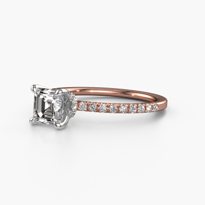 Der oben gezeigte Roségold Verlobungsring wird Crystal ASSC 4 genannt. Es ist ein Pavé Solitär Ring, da er einen zentralen Edelstein und ein Band mit Pavé-Fassung hat. Der exklusive Pavé Solitär Verlobungsring ist in der Kombination 14 Karat Roségold mit Weißgold und ist mit einem asscher 1.00 crt Lab-grown Diamant-Mittelstein besetzt und das Band hat eine Pavé-Fassung mit Diamanten. Jedes Schmuckstück wird hergestellt mit Leidenschaft und Liebe, von einem unserer Meister-Goldschmiede. Um den zentralen Stein noch mehr zu betonen, hat das Band eine Pavé-Fassung mit weiteren Lab-grown Diamant. Durch die offenen Krappen kann das Licht aus mehreren Winkeln auf den Lab-grown Diamant treffen und der Lab-grown Diamant-Ring funkelt noch mehr. Das obere Foto zeigt die leidenschaftlich handgefertigten Details des Rings. Die hohe Positionierung der Mittelstein ist ein echter Blickfang. Der perfekte Verlobungsring für das Kronjuwel Ihres Lebens!Durch die Kombination modernster Technik mit uralter Handwerkskunst können wir alle Verlobungsringe in unserem eigenen Studio anfertigen. Jedes Schmuckstück wird auf Anfrage gefertigt. Das ist vorteilhaft, weil wir Ihnen dadurch einen Preis anbieten können, den Sie nirgendwo anders finden.Unser Team fügt unserer Online-Kollektion täglich neue Designs hinzu. Unsere Designer und Goldschmiede arbeiten zusammen, um das beste Design zu kreieren. Wir bemühen uns, eine vielfältige Kollektion von Schmuckstücken anzubieten. Vielleicht haben Sie ein bestimmtes Design im Sinn. Eines, dass Sie irgendwo gesehen haben. Gerne geben wir Ihnen eine kostenlose Beratung. Wir machen Ihnen ein Angebot, basierend auf einem fairen Preis/Leistungsverhältnis, das Sie verblüffen wird.Um es einfacher zu machen, bieten wir eine kostenlose 30-tägige Rücksendung.
