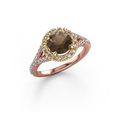 Der oben gezeigte Roségold Verlobungsring wird Kimber RND genannt. Es ist ein Pavé Solitär Ring, da er einen zentralen Edelstein und ein Band mit Pavé-Fassung hat. Der klassische Pavé Solitär Verlobungsring ist in der Kombination 14 Karat Roségold mit Gold und ist mit einem rund 7 mm Rauchquarz-Mittelstein besetzt und das Band hat eine Pavé-Fassung mit Lab grown Diamant. Jedes Schmuckstück ist um Ihrem Finger Glanz zu verleihen. Jeder Ring wird von unseren Goldschmieden liebevoll von Hand gefertigt. Um den zentralen Stein noch mehr zu betonen, hat das Band eine Pavé-Fassung mit weiteren Rauchquarz. Durch die offenen Krappen kann das Licht aus mehreren Winkeln auf den Rauchquarz treffen und der Rauchquarz-Ring funkelt noch mehr. Das obere Foto zeigt die leidenschaftlich handgefertigten Details des Rings. Die hohe Positionierung der Mittelstein ist ein echter Blickfang. Der perfekte Verlobungsring für das Kronjuwel Ihres Lebens!Nach Erhalt Ihrer Bestellung beginnen unsere Goldschmiede mit Leidenschaft den kreativen Prozess und fertigen Ihren Verlobungsring in unserem eigenen Studio. Da wir keine großen Lager haben, werden diese Kosten nicht an Sie weitergegeben. Unsere Preisgestaltung ist der Beweis dafür! Wir bieten Schmuck zum niedrigsten Preis, garantiert.Unser Team fügt unserer Online-Kollektion täglich neue Designs hinzu. Unsere Designer und Goldschmiede arbeiten zusammen, um das beste Design zu kreieren. Wir bemühen uns, eine vielfältige Kollektion von Schmuckstücken anzubieten. Vielleicht haben Sie ein bestimmtes Design im Sinn. Eines, dass Sie irgendwo gesehen haben. Gerne geben wir Ihnen eine kostenlose Beratung. Wir machen Ihnen ein Angebot, basierend auf einem fairen Preis/Leistungsverhältnis, das Sie verblüffen wird.Um es einfacher zu machen, bieten wir eine kostenlose 30-tägige Rücksendung.