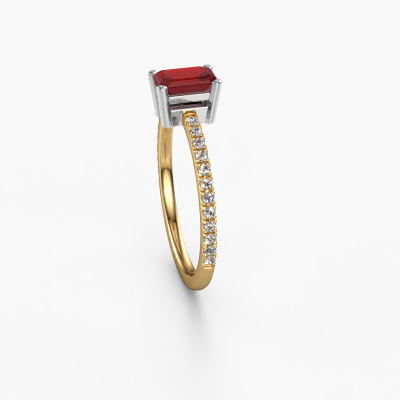 Der oben gezeigte Ring wird Denita 2 EME genannt. Es ist ein Pavé Solitär Ring, da er einen zentralen Edelstein und ein Band mit Pavé-Fassung hat. Dieser 14 Karat Gold ring ist mit einem 6x4 mm smaragd schliff Rubin-Mittelstein besetzt und das Band hat eine Pavé-Fassung mit Diamanten. Jedes Schmuckstück wird von unseren Meister-Goldschmieden in unserem eigenen Studio für Sie gefertigt.Dieser traditionell Gold Pavé Solitär Verlobungsring mit Pavé-Fassung hat einen exquisiten, smaragd schliff Rubin als Mittelstein. Um den zentralen Stein noch mehr zu betonen, hat das Band eine Pavé-Fassung mit weiteren Diamanten. Durch die offenen Krappen kann das Licht aus mehreren Winkeln auf den Rubin treffen und der Rubin-Ring funkelt noch mehr. Das obere Foto zeigt die leidenschaftlich handgefertigten Details des Rings. Die hohe Positionierung der Mittelstein ist ein echter Blickfang. Der perfekte Verlobungsring für das Kronjuwel Ihres Lebens!Haben Sie ein bestimmtes Budget? Sie können uns gerne kontaktieren, damit wir Ihre Optionen besprechen können. Wir bieten unsere Verlobungsringe zum garantiert besten Preis, denn wir fertigen sie auf Bestellung. Solche Preise finden Sie nirgendwo anders!Unser Team fügt unserer Online-Kollektion täglich neue Designs hinzu. Unsere Designer und Goldschmiede arbeiten zusammen, um das beste Design zu kreieren. Wir bemühen uns, eine vielfältige Kollektion von Schmuckstücken anzubieten. Vielleicht haben Sie ein bestimmtes Design im Sinn. Eines, dass Sie irgendwo gesehen haben. Gerne geben wir Ihnen eine kostenlose Beratung. Wir machen Ihnen ein Angebot, basierend auf einem fairen Preis/Leistungsverhältnis, das Sie verblüffen wird.Um es einfacher zu machen, bieten wir eine kostenlose 30-tägige Rücksendung.