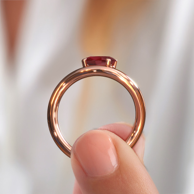 In Ihren Augen ist keine andere so wie sie. Sie ist genau die Eine, anders als alle anderen und rein... Diese Qualitäten werden von unserem design Roségold Solitär Rubin Verlobungsring perfekt unterstrichen. Dieser Rubin wird von unseren