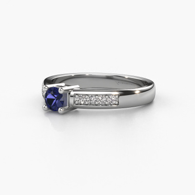 Der oben gezeigte Platin Verlobungsring wird Eline 2 genannt. Es ist ein Pavé Solitär Ring, da er einen zentralen Edelstein und ein Band mit Pavé-Fassung hat. Der moderne Pavé Solitär Verlobungsring ist in der Kombination Platin mit Platin und ist mit einem rund 3.7 mm Saphir-Mittelstein besetzt und das Band hat eine Pavé-Fassung mit Diamanten. Jedes Schmuckstück ist einzigartig in jeder Hinsicht! Einfach nach Ihren Wünschen anzupassen. Um den zentralen Stein noch mehr zu betonen, hat das Band eine Pavé-Fassung mit weiteren Saphir. Durch die offenen Krappen kann das Licht aus mehreren Winkeln auf den Saphir treffen und der Saphir-Ring funkelt noch mehr. Das obere Foto zeigt die leidenschaftlich handgefertigten Details des Rings. Die hohe Positionierung der Mittelstein ist ein echter Blickfang. Der perfekte Verlobungsring für das Kronjuwel Ihres Lebens!Da wir unsere eigenen Ringe entwerfen und liefern, können wir Ihnen einen Verlobungsring zu einem Preis anbieten, den Sie nirgendwo anders finden. Ein Ring wird auf Bestellung angefertigt, wodurch kein überschüssiges Material anfällt. So können wir Ihnen ein gutes Angebot zum besten Preis machen. Wir verstehen, dass es sich riskant anfühlt, Ihren Verlobungsring online zu kaufen. Jedoch helfen wir Ihnen gerne beim Designprozess unter Berücksichtigung Ihres Budgets.Unser Team fügt unserer Online-Kollektion täglich neue Designs hinzu. Unsere Designer und Goldschmiede arbeiten zusammen, um das beste Design zu kreieren. Wir bemühen uns, eine vielfältige Kollektion von Schmuckstücken anzubieten. Vielleicht haben Sie ein bestimmtes Design im Sinn. Eines, dass Sie irgendwo gesehen haben. Gerne geben wir Ihnen eine kostenlose Beratung. Wir machen Ihnen ein Angebot, basierend auf einem fairen Preis/Leistungsverhältnis, das Sie verblüffen wird.Um es einfacher zu machen, bieten wir eine kostenlose 30-tägige Rücksendung.