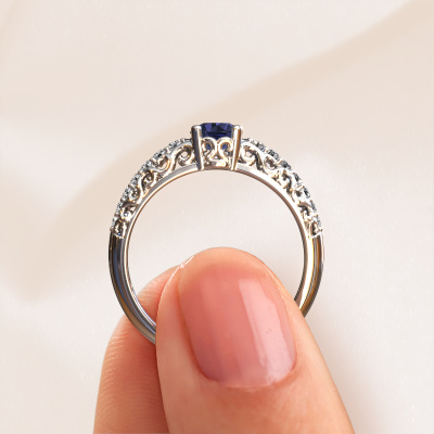 Dieser Verlobungsring aus Platin mit 5 mm Saphir heißt Mellie. Was macht Ihre Beziehung einzigartig? Was hat sie an sich, was Sie dazu bringt, auf die Knie zu fallen? Die einzigartige Verbindung zwischen Ihnen beiden wird durch einen ebenso einzigartigen Ring unterstrichen. Ein einzigartiger Pavé Solitär Verlobungsring, der nur für sie gemacht wurde. Deshalb passt dieser Ring wie angegossen. Jedes einzelne Detail dieses Filigrane, Platin Saphir Verlobungsring wird von unserem erfahrenen Goldschmieden in unserem eigenen Studio von Hand ausgesucht, bearbeitet und poliert. Das Endprodukt ist ein exquisiter Ring, einzigartig und bis zur Perfektion gebracht. Danach streben unsere erfahrenen Juweliere. Jedes Schmuckstück wird hergestellt von einem Team leidenschaftlicher Goldschmiede und Schmuckdesigner. Das wird Ihr Kronjuwel unbedingt zu einem Blickfang machen.Haben Sie ein bestimmtes Budget? Sie können uns gerne kontaktieren, damit wir Ihre Optionen besprechen können. Wir bieten unsere Verlobungsringe zum garantiert besten Preis, denn wir fertigen sie auf Bestellung. Solche Preise finden Sie nirgendwo anders!Haben Sie irgendwo einen bestimmten Verlobungsring gefunden, den Sie Ihrem Liebsten schenken möchten? Sie können uns gerne sagen, was Sie wollen und wir werden Ihr Design in einen Einzigartigen Vintage Verlobungsring verwandeln. Sie können die Entwicklungen Ihres Ringdesigns verfolgen, da wir 3D-Zeichnungen verwenden. Das gibt Ihnen eine realistische Vorschau, wie Ihr Design aussehen wird. Sie können auch einen Dummy vorbestellen. Ein Dummy ist ein Kunststoffring, der nach Ihrem Ringdesign gestaltet werden kann. Sie können ihn anprobieren und prüfen, ob seine Breite und Größe für Sie geeignet sind. Wir senden Ihnen gerne ein unverbindliches Angebot zu einem fairen Preis/Leistungsverhältnis. Sie werden in Anbetracht der Qualität des Rings und der Edelsteine überrascht sein.Um es einfacher zu machen, bieten wir eine kostenlose 30-tägige Rücksendung.