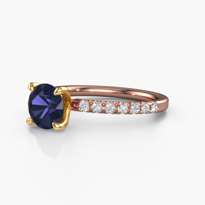 Der oben gezeigte Roségold Verlobungsring wird Crystal RND 2 genannt. Es ist ein Pavé Solitär Ring, da er einen zentralen Edelstein und ein Band mit Pavé-Fassung hat. Der klassische Pavé Solitär Verlobungsring ist in der Kombination 14 Karat Roségold mit Gold und ist mit einem rund 7 mm Saphir-Mittelstein besetzt und das Band hat eine Pavé-Fassung mit Lab grown Diamant. Jedes Schmuckstück ist einzigartig in jeder Hinsicht! Einfach nach Ihren Wünschen anzupassen. Um den zentralen Stein noch mehr zu betonen, hat das Band eine Pavé-Fassung mit weiteren Saphir. Durch die offenen Krappen kann das Licht aus mehreren Winkeln auf den Saphir treffen und der Saphir-Ring funkelt noch mehr. Das obere Foto zeigt die leidenschaftlich handgefertigten Details des Rings. Die hohe Positionierung der Mittelstein ist ein echter Blickfang. Der perfekte Verlobungsring für das Kronjuwel Ihres Lebens!Nachdem Sie Ihre Bestellung aufgegeben haben, beginnen unsere Goldschmiede mit dem kreativen Prozess der Herstellung Ihres Crystal RND 2 Verlobungsring. Wir haben keine Lager. Das ist vorteilhaft, da diese Kosten nicht an Sie weitergegeben werden. Daher sind wir in der Lage, Schmuck zu außergewöhnlich niedrigen Preisen anzubieten.Verschiedene Arten von neuen Ringen werden täglich von unserem Team angefertigt. Vielleicht haben Sie irgendwo einen Pavé Solitär Verlobungsring gefunden. Einen, den Sie Ihrem Liebsten schenken möchten. Bitte zögern Sie nicht, unseren Schmuckdesignern Ihre Gedanken und Ihr Design zu zeigen. Wir würden gerne Ihr Design in einen klassische Verlobungsring verwandeln. Sie können die Entwicklungen Ihres Ringdesigns verfolgen, da wir sehr detaillierte 3D-Zeichnungen verwenden. Darüber hinaus können Sie einen Dummy des Designs bestellen. Ein Dummy ist ein Kunststoffring, der nach Ihrem Ringdesign gestaltet werden kann. Sie können ihn anprobieren und prüfen, ob der Verlobungsring Ihren Vorstellungen entspricht. Wir senden Ihnen gerne ein unverbindliches Angebot zu einem fairen Preis/Leistungsverhältnis. Das Angebot wird Sie angesichts der Qualität des Rings und der Edelsteine verblüffen.Um es einfacher zu machen, bieten wir eine kostenlose 30-tägige Rücksendung.