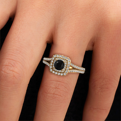 Der oben gezeigte Gold Verlobungsring wird Annette genannt. Es ist ein Halo Ring, da er einen zentralen Edelstein und ein Band mit Pavé-Fassung hat. Der Vintage Halo Verlobungsring ist in der Kombination 14 Karat Gold mit Gold und ist mit einem rund 0.60 crt Schwarz Diamant-Mittelstein besetzt und das Band hat eine Pavé-Fassung mit Diamanten. Jedes Schmuckstück wird von unseren Meister-Goldschmieden in unserem eigenen Studio für Sie gefertigt. Um den zentralen Stein noch mehr zu betonen, hat das Band eine Pavé-Fassung mit weiteren Schwarz Diamant. Durch die offenen Krappen kann das Licht aus mehreren Winkeln auf den Schwarz Diamant treffen und der Schwarz Diamant-Ring funkelt noch mehr. Das obere Foto zeigt die leidenschaftlich handgefertigten Details des Rings. Die hohe Positionierung der Mittelstein ist ein echter Blickfang. Der perfekte Verlobungsring für das Kronjuwel Ihres Lebens!Nach Erhalt Ihrer Bestellung beginnen unsere Goldschmiede mit Leidenschaft den kreativen Prozess und fertigen Ihren Verlobungsring in unserem eigenen Studio. Da wir keine großen Lager haben, werden diese Kosten nicht an Sie weitergegeben. Unsere Preisgestaltung ist der Beweis dafür! Wir bieten Schmuck zum niedrigsten Preis, garantiert.Haben Sie irgendwo einen bestimmten Verlobungsring gefunden, den Sie Ihrem Liebsten schenken möchten? Sie können uns gerne sagen, was Sie wollen und wir werden Ihr Design in einen Einzigartigen Vintage Verlobungsring verwandeln. Sie können die Entwicklungen Ihres Ringdesigns verfolgen, da wir 3D-Zeichnungen verwenden. Das gibt Ihnen eine realistische Vorschau, wie Ihr Design aussehen wird. Sie können auch einen Dummy vorbestellen. Ein Dummy ist ein Kunststoffring, der nach Ihrem Ringdesign gestaltet werden kann. Sie können ihn anprobieren und prüfen, ob seine Breite und Größe für Sie geeignet sind. Wir senden Ihnen gerne ein unverbindliches Angebot zu einem fairen Preis/Leistungsverhältnis. Sie werden in Anbetracht der Qualität des Rings und der Edelsteine überrascht sein.Um es einfacher zu machen, bieten wir eine kostenlose 30-tägige Rücksendung.