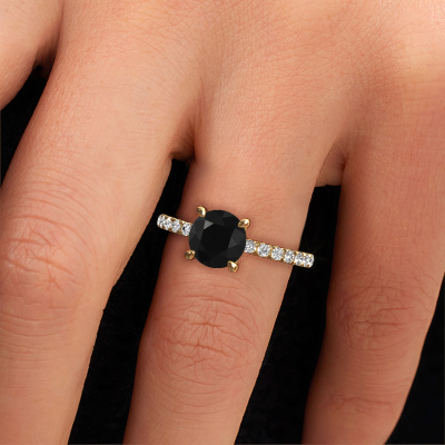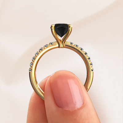 Der oben gezeigte Gold Verlobungsring wird Crystal RND 2 genannt. Es ist ein Pavé Solitär Ring, da er einen zentralen Edelstein und ein Band mit Pavé-Fassung hat. Der klassische Pavé Solitär Verlobungsring ist in der Kombination 14 Karat Gold mit Gold und ist mit einem rund 1.85 crt Schwarz Diamant-Mittelstein besetzt und das Band hat eine Pavé-Fassung mit Lab grown Diamant. Jedes Schmuckstück ist einzigartig in jeder Hinsicht! Einfach nach Ihren Wünschen anzupassen. Um den zentralen Stein noch mehr zu betonen, hat das Band eine Pavé-Fassung mit weiteren Schwarz Diamant. Durch die offenen Krappen kann das Licht aus mehreren Winkeln auf den Schwarz Diamant treffen und der Schwarz Diamant-Ring funkelt noch mehr. Das obere Foto zeigt die leidenschaftlich handgefertigten Details des Rings. Die hohe Positionierung der Mittelstein ist ein echter Blickfang. Der perfekte Verlobungsring für das Kronjuwel Ihres Lebens!Nachdem Sie Ihre Bestellung aufgegeben haben, beginnen unsere Goldschmiede mit dem kreativen Prozess der Herstellung Ihres Crystal RND 2 Verlobungsring. Wir haben keine Lager. Das ist vorteilhaft, da diese Kosten nicht an Sie weitergegeben werden. Daher sind wir in der Lage, Schmuck zu außergewöhnlich niedrigen Preisen anzubieten.Verschiedene Arten von neuen Ringen werden täglich von unserem Team angefertigt. Vielleicht haben Sie irgendwo einen Pavé Solitär Verlobungsring gefunden. Einen, den Sie Ihrem Liebsten schenken möchten. Bitte zögern Sie nicht, unseren Schmuckdesignern Ihre Gedanken und Ihr Design zu zeigen. Wir würden gerne Ihr Design in einen klassische Verlobungsring verwandeln. Sie können die Entwicklungen Ihres Ringdesigns verfolgen, da wir sehr detaillierte 3D-Zeichnungen verwenden. Darüber hinaus können Sie einen Dummy des Designs bestellen. Ein Dummy ist ein Kunststoffring, der nach Ihrem Ringdesign gestaltet werden kann. Sie können ihn anprobieren und prüfen, ob der Verlobungsring Ihren Vorstellungen entspricht. Wir senden Ihnen gerne ein unverbindliches Angebot zu einem fairen Preis/Leistungsverhältnis. Das Angebot wird Sie angesichts der Qualität des Rings und der Edelsteine verblüffen.Um es einfacher zu machen, bieten wir eine kostenlose 30-tägige Rücksendung.