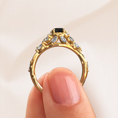 Der oben gezeigte Ring wird Samantha RND genannt. Es ist ein Pavé Solitär Ring, da er einen zentralen Edelstein und ein Band mit Pavé-Fassung hat. Dieser 14 Karat Gold ring ist mit einem 0.60 crt rund Schwarz Diamant-Mittelstein besetzt und das Band hat eine Pavé-Fassung mit Diamanten. Jedes Schmuckstück wird hergestellt mit Leidenschaft und Liebe, von einem unserer Meister-Goldschmiede.Dieser moderne Gold Pavé Solitär Verlobungsring mit Pavé-Fassung hat einen exquisiten, rund Schwarz Diamant als Mittelstein. Um den zentralen Stein noch mehr zu betonen, hat das Band eine Pavé-Fassung mit weiteren Diamanten. Durch die offenen Krappen kann das Licht aus mehreren Winkeln auf den Schwarz Diamant treffen und der Schwarz Diamant-Ring funkelt noch mehr. Das obere Foto zeigt die leidenschaftlich handgefertigten Details des Rings. Die hohe Positionierung der Mittelstein ist ein echter Blickfang. Der perfekte Verlobungsring für das Kronjuwel Ihres Lebens!Durch die Kombination modernster Technik mit uralter Handwerkskunst können wir alle Verlobungsringe in unserem eigenen Studio anfertigen. Jedes Schmuckstück wird auf Anfrage gefertigt. Das ist vorteilhaft, weil wir Ihnen dadurch einen Preis anbieten können, den Sie nirgendwo anders finden.Unsere Designer und Goldschmiede arbeiten jeden Tag zusammen und versuchen, neue Schmuckstücke zu kreieren. Vielleicht haben Sie irgendwo einen schönen, moderne Verlobungsring gefunden, nach dem Ihr einzigartiger Ring gestaltet werden kann. Setzen Sie sich mit uns in Verbindung. Wir machen Ihnen ein Angebot, basierend auf einem fairen Preis/Leistungsverhältnis, das Sie begeistern wird.Um es einfacher zu machen, bieten wir eine kostenlose 30-tägige Rücksendung.