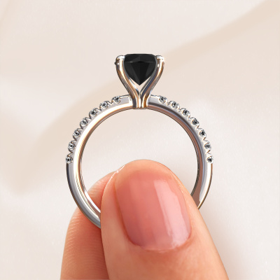 Der oben gezeigte Platin Verlobungsring wird Crystal RND 2 genannt. Es ist ein Pavé Solitär Ring, da er einen zentralen Edelstein und ein Band mit Pavé-Fassung hat. Der klassische Pavé Solitär Verlobungsring ist in der Kombination Platin mit Platin und ist mit einem rund 1.85 crt Schwarz Diamant-Mittelstein besetzt und das Band hat eine Pavé-Fassung mit Lab grown Diamant. Jedes Schmuckstück ist einzigartig in jeder Hinsicht! Einfach nach Ihren Wünschen anzupassen. Um den zentralen Stein noch mehr zu betonen, hat das Band eine Pavé-Fassung mit weiteren Schwarz Diamant. Durch die offenen Krappen kann das Licht aus mehreren Winkeln auf den Schwarz Diamant treffen und der Schwarz Diamant-Ring funkelt noch mehr. Das obere Foto zeigt die leidenschaftlich handgefertigten Details des Rings. Die hohe Positionierung der Mittelstein ist ein echter Blickfang. Der perfekte Verlobungsring für das Kronjuwel Ihres Lebens!Nachdem Sie Ihre Bestellung aufgegeben haben, beginnen unsere Goldschmiede mit dem kreativen Prozess der Herstellung Ihres Crystal RND 2 Verlobungsring. Wir haben keine Lager. Das ist vorteilhaft, da diese Kosten nicht an Sie weitergegeben werden. Daher sind wir in der Lage, Schmuck zu außergewöhnlich niedrigen Preisen anzubieten.Verschiedene Arten von neuen Ringen werden täglich von unserem Team angefertigt. Vielleicht haben Sie irgendwo einen Pavé Solitär Verlobungsring gefunden. Einen, den Sie Ihrem Liebsten schenken möchten. Bitte zögern Sie nicht, unseren Schmuckdesignern Ihre Gedanken und Ihr Design zu zeigen. Wir würden gerne Ihr Design in einen klassische Verlobungsring verwandeln. Sie können die Entwicklungen Ihres Ringdesigns verfolgen, da wir sehr detaillierte 3D-Zeichnungen verwenden. Darüber hinaus können Sie einen Dummy des Designs bestellen. Ein Dummy ist ein Kunststoffring, der nach Ihrem Ringdesign gestaltet werden kann. Sie können ihn anprobieren und prüfen, ob der Verlobungsring Ihren Vorstellungen entspricht. Wir senden Ihnen gerne ein unverbindliches Angebot zu einem fairen Preis/Leistungsverhältnis. Das Angebot wird Sie angesichts der Qualität des Rings und der Edelsteine verblüffen.Um es einfacher zu machen, bieten wir eine kostenlose 30-tägige Rücksendung.