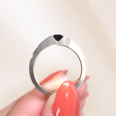 Der oben gezeigte Ring wird Lizzy 2 genannt. Es ist ein Pavé Solitär Ring, da er einen zentralen Edelstein und ein Band mit Pavé-Fassung hat. Dieser Platin ring ist mit einem 0.36 crt rund Schwarz Diamant-Mittelstein besetzt und das Band hat eine Pavé-Fassung mit Diamanten. Jedes Schmuckstück lässt Ihren Finger erstrahlen. Ihr Ring ist mit Liebe von unseren Goldschmieden handgefertigt.Dieser moderne Platin Pavé Solitär Verlobungsring mit Pavé-Fassung hat einen exquisiten, rund Schwarz Diamant als Mittelstein. Um den zentralen Stein noch mehr zu betonen, hat das Band eine Pavé-Fassung mit weiteren Diamanten. Durch die offenen Krappen kann das Licht aus mehreren Winkeln auf den Schwarz Diamant treffen und der Schwarz Diamant-Ring funkelt noch mehr. Das obere Foto zeigt die leidenschaftlich handgefertigten Details des Rings. Die hohe Positionierung der Mittelstein ist ein echter Blickfang. Der perfekte Verlobungsring für das Kronjuwel Ihres Lebens!Durch die Kombination modernster Technik mit uralter Handwerkskunst können wir alle Verlobungsringe in unserem eigenen Studio anfertigen. Jedes Schmuckstück wird auf Anfrage gefertigt. Das ist vorteilhaft, weil wir Ihnen dadurch einen Preis anbieten können, den Sie nirgendwo anders finden.Unser Team fügt unserer Online-Kollektion täglich neue Designs hinzu. Unsere Designer und Goldschmiede arbeiten zusammen, um das beste Design zu kreieren. Wir bemühen uns, eine vielfältige Kollektion von Schmuckstücken anzubieten. Vielleicht haben Sie ein bestimmtes Design im Sinn. Eines, dass Sie irgendwo gesehen haben. Gerne geben wir Ihnen eine kostenlose Beratung. Wir machen Ihnen ein Angebot, basierend auf einem fairen Preis/Leistungsverhältnis, das Sie verblüffen wird.Um es einfacher zu machen, bieten wir eine kostenlose 30-tägige Rücksendung.
