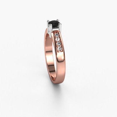 Der oben gezeigte Roségold Verlobungsring wird Eline 2 genannt. Es ist ein Pavé Solitär Ring, da er einen zentralen Edelstein und ein Band mit Pavé-Fassung hat. Der moderne Pavé Solitär Verlobungsring ist in der Kombination 14 Karat Roségold mit Weißgold und ist mit einem rund 0.24 crt Schwarz Diamant-Mittelstein besetzt und das Band hat eine Pavé-Fassung mit Diamanten. Jedes Schmuckstück ist einzigartig in jeder Hinsicht! Einfach nach Ihren Wünschen anzupassen. Um den zentralen Stein noch mehr zu betonen, hat das Band eine Pavé-Fassung mit weiteren Schwarz Diamant. Durch die offenen Krappen kann das Licht aus mehreren Winkeln auf den Schwarz Diamant treffen und der Schwarz Diamant-Ring funkelt noch mehr. Das obere Foto zeigt die leidenschaftlich handgefertigten Details des Rings. Die hohe Positionierung der Mittelstein ist ein echter Blickfang. Der perfekte Verlobungsring für das Kronjuwel Ihres Lebens!Da wir unsere eigenen Ringe entwerfen und liefern, können wir Ihnen einen Verlobungsring zu einem Preis anbieten, den Sie nirgendwo anders finden. Ein Ring wird auf Bestellung angefertigt, wodurch kein überschüssiges Material anfällt. So können wir Ihnen ein gutes Angebot zum besten Preis machen. Wir verstehen, dass es sich riskant anfühlt, Ihren Verlobungsring online zu kaufen. Jedoch helfen wir Ihnen gerne beim Designprozess unter Berücksichtigung Ihres Budgets.Unser Team fügt unserer Online-Kollektion täglich neue Designs hinzu. Unsere Designer und Goldschmiede arbeiten zusammen, um das beste Design zu kreieren. Wir bemühen uns, eine vielfältige Kollektion von Schmuckstücken anzubieten. Vielleicht haben Sie ein bestimmtes Design im Sinn. Eines, dass Sie irgendwo gesehen haben. Gerne geben wir Ihnen eine kostenlose Beratung. Wir machen Ihnen ein Angebot, basierend auf einem fairen Preis/Leistungsverhältnis, das Sie verblüffen wird.Um es einfacher zu machen, bieten wir eine kostenlose 30-tägige Rücksendung.