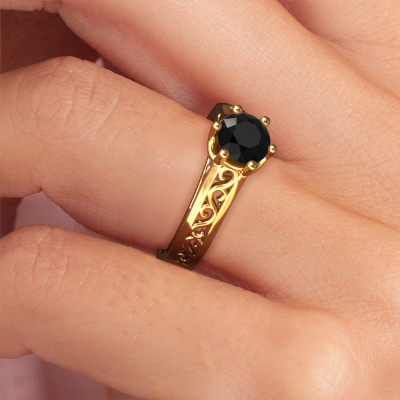 Der oben gezeigte Verlobungsring wird Shan genannt. Wir nennen das einen Solitär-Ring, denn er hat einen einzelnen Edelstein. Es ist ein 14 Karat Gold ring, mit 0.96 crt rund Schwarz Diamant. Das Besondere an unserem Konfigurator ist dass Sie selbst einem Schmuckstück zusammenstellen können zu einem eigenen persönlichen Schmuckstück. Dieser Solitäre Verlobungsring ist gefertigt in der Edelmetall Kombination Gold mit Gold, aber Sie können also auch wählen aus anderen Farben. Jedes Schmuckstück wird hergestellt von einem Team leidenschaftlicher Goldschmiede und Schmuckdesigner. Das wird Ihr Kronjuwel unbedingt zu einem Blickfang machen. Der Solitär-Verlobungsring ist eine Sonderform des Verlobungsring. Seine offenen Krappen ermöglichen, dass Licht aus mehr Winkeln auf den Edelstein trifft. Dieser Keltische Verlobungsring ist durch die hohe Positionierung des Edelsteins ein atemberaubender Blickfang. Wir schmücken diesen Solitär-Ring sorgfältig von Hand, damit Sie Ihren Anfrage mit einem einzigartigen Ring würdigen können. Die Liebe Ihres Lebens verdient nur das Beste. Mit unserer modernen Technik können wir Schmuckstücke von höchster Qualität mit größter Sorgfalt für Sie entwerfen und anpassen. Unsere Verlobungsringe sind immer um 30 Prozent günstiger als bei anderen Juwelieren. Wir fertigen Verlobungsringe auf Bestellung, also müssen wir keine großen Lager unterhalten. Wenn Sie ein bestimmtes Budget haben, beraten wir Sie gerne entsprechend.Haben Sie irgendwo einen bestimmten Verlobungsring gefunden, den Sie Ihrem Liebsten schenken möchten? Sie können uns gerne sagen, was Sie wollen und wir werden Ihr Design in einen Einzigartigen Keltische Verlobungsring verwandeln. Sie können die Entwicklungen Ihres Ringdesigns verfolgen, da wir 3D-Zeichnungen verwenden. Das gibt Ihnen eine realistische Vorschau, wie Ihr Design aussehen wird. Sie können auch einen Dummy vorbestellen. Ein Dummy ist ein Kunststoffring, der nach Ihrem Ringdesign gestaltet werden kann. Sie können ihn anprobieren und prüfen, ob seine Breite und Größe für Sie geeignet sind. Wir senden Ihnen gerne ein unverbindliches Angebot zu einem fairen Preis/Leistungsverhältnis. Sie werden in Anbetracht der Qualität des Rings und der Edelsteine überrascht sein.Um es einfacher zu machen, bieten wir eine kostenlose 30-tägige Rücksendung.