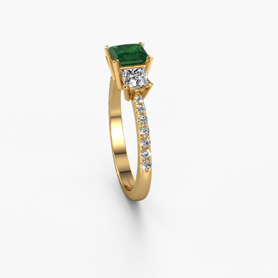 Dieser Verlobungsring aus 14 Karat Gold mit 5 mm Smaragd heißt Dorla. Was macht Ihre Beziehung einzigartig? Was hat sie an sich, was Sie dazu bringt, auf die Knie zu fallen? Die einzigartige Verbindung zwischen Ihnen beiden wird durch einen ebenso einzigartigen Ring unterstrichen. Ein einzigartiger 3-stone Verlobungsring, der nur für sie gemacht wurde. Deshalb passt dieser Ring wie angegossen. Jedes einzelne Detail dieses Micropavé, Gold Smaragd Verlobungsring wird von unserem erfahrenen Goldschmieden in unserem eigenen Studio von Hand ausgesucht, bearbeitet und poliert. Das Endprodukt ist ein exquisiter Ring, einzigartig und bis zur Perfektion gebracht. Danach streben unsere erfahrenen Juweliere. Jedes Schmuckstück ist einzigartig in jeder Hinsicht! Einfach nach Ihren Wünschen anzupassen.Nach Erhalt Ihrer Bestellung beginnen unsere Goldschmiede mit Leidenschaft den kreativen Prozess und fertigen Ihren Verlobungsring in unserem eigenen Studio. Da wir keine großen Lager haben, werden diese Kosten nicht an Sie weitergegeben. Unsere Preisgestaltung ist der Beweis dafür! Wir bieten Schmuck zum niedrigsten Preis, garantiert.Haben Sie einen bestimmten Ring im Sinn? Eines, dass Sie irgendwo gesehen haben. Bitte zögern Sie nicht, uns zu sagen, was Sie wollen und wir werden Ihr Design in einen Einzigartigen Verlobungsring verwandeln. Sie können die Entwicklungen Ihres Ringdesigns verfolgen, da wir 3D-Zeichnungen verwenden. Das gibt Ihnen eine realistische Vorschau Ihres Designs. Wir senden Ihnen gerne ein unverbindliches Angebot zu einem fairen Preis/Leistungsverhältnis. Es wird Sie erstaunen.Um es einfacher zu machen, bieten wir eine kostenlose 30-tägige Rücksendung.