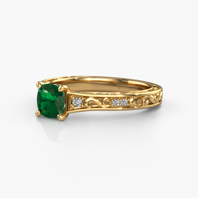 Der oben gezeigte Ring wird Mallory cus genannt. Es ist ein Pavé Solitär Ring, da er einen zentralen Edelstein und ein Band mit Pavé-Fassung hat. Dieser 14 Karat Gold ring ist mit einem 5.5 mm cussion Smaragd-Mittelstein besetzt und das Band hat eine Pavé-Fassung mit Diamanten. Jedes Schmuckstück wird von unseren Meister-Goldschmieden in unserem eigenen Studio für Sie gefertigt.Dieser Keltische Gold Pavé Solitär Verlobungsring mit Pavé-Fassung hat einen exquisiten, cussion Smaragd als Mittelstein. Um den zentralen Stein noch mehr zu betonen, hat das Band eine Pavé-Fassung mit weiteren Diamanten. Durch die offenen Krappen kann das Licht aus mehreren Winkeln auf den Smaragd treffen und der Smaragd-Ring funkelt noch mehr. Das obere Foto zeigt die leidenschaftlich handgefertigten Details des Rings. Die hohe Positionierung der Mittelstein ist ein echter Blickfang. Der perfekte Verlobungsring für das Kronjuwel Ihres Lebens!Mit unserer modernen Technik können wir Schmuckstücke von höchster Qualität mit größter Sorgfalt für Sie entwerfen und anpassen. Unsere Verlobungsringe sind immer um 30 Prozent günstiger als bei anderen Juwelieren. Wir fertigen Verlobungsringe auf Bestellung, also müssen wir keine großen Lager unterhalten. Wenn Sie ein bestimmtes Budget haben, beraten wir Sie gerne entsprechend.Verschiedene Arten von neuen Ringen werden täglich von unserem Team angefertigt. Vielleicht haben Sie irgendwo einen Pavé Solitär Verlobungsring gefunden. Einen, den Sie Ihrem Liebsten schenken möchten. Bitte zögern Sie nicht, unseren Schmuckdesignern Ihre Gedanken und Ihr Design zu zeigen. Wir würden gerne Ihr Design in einen Keltische Verlobungsring verwandeln. Sie können die Entwicklungen Ihres Ringdesigns verfolgen, da wir sehr detaillierte 3D-Zeichnungen verwenden. Darüber hinaus können Sie einen Dummy des Designs bestellen. Ein Dummy ist ein Kunststoffring, der nach Ihrem Ringdesign gestaltet werden kann. Sie können ihn anprobieren und prüfen, ob der Verlobungsring Ihren Vorstellungen entspricht. Wir senden Ihnen gerne ein unverbindliches Angebot zu einem fairen Preis/Leistungsverhältnis. Das Angebot wird Sie angesichts der Qualität des Rings und der Edelsteine verblüffen.Um es einfacher zu machen, bieten wir eine kostenlose 30-tägige Rücksendung.
