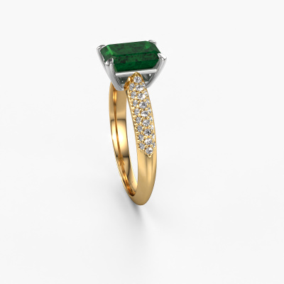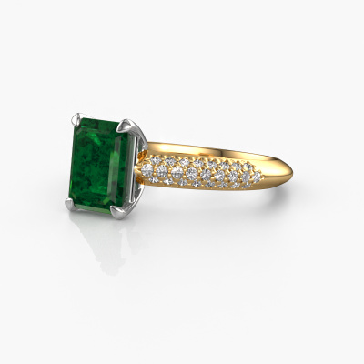 Der oben gezeigte Gold Verlobungsring wird Morane EME genannt. Es ist ein Pavé Solitär Ring, da er einen zentralen Edelstein und ein Band mit Pavé-Fassung hat. Der einzigartige Pavé Solitär Verlobungsring ist in der Kombination 14 Karat Gold mit Weißgold und ist mit einem smaragd schliff 8x6 mm Smaragd-Mittelstein besetzt und das Band hat eine Pavé-Fassung mit Lab grown Diamant. Jedes Schmuckstück wird von unseren Meister-Goldschmieden in unserem eigenen Studio für Sie gefertigt. Um den zentralen Stein noch mehr zu betonen, hat das Band eine Pavé-Fassung mit weiteren Smaragd. Durch die offenen Krappen kann das Licht aus mehreren Winkeln auf den Smaragd treffen und der Smaragd-Ring funkelt noch mehr. Das obere Foto zeigt die leidenschaftlich handgefertigten Details des Rings. Die hohe Positionierung der Mittelstein ist ein echter Blickfang. Der perfekte Verlobungsring für das Kronjuwel Ihres Lebens!Nach Erhalt Ihrer Bestellung beginnen unsere Goldschmiede mit Leidenschaft den kreativen Prozess und fertigen Ihren Verlobungsring in unserem eigenen Studio. Da wir keine großen Lager haben, werden diese Kosten nicht an Sie weitergegeben. Unsere Preisgestaltung ist der Beweis dafür! Wir bieten Schmuck zum niedrigsten Preis, garantiert.Unser Team fügt unserer Online-Kollektion täglich neue Designs hinzu. Unsere Designer und Goldschmiede arbeiten zusammen, um das beste Design zu kreieren. Wir bemühen uns, eine vielfältige Kollektion von Schmuckstücken anzubieten. Vielleicht haben Sie ein bestimmtes Design im Sinn. Eines, dass Sie irgendwo gesehen haben. Gerne geben wir Ihnen eine kostenlose Beratung. Wir machen Ihnen ein Angebot, basierend auf einem fairen Preis/Leistungsverhältnis, das Sie verblüffen wird.Um es einfacher zu machen, bieten wir eine kostenlose 30-tägige Rücksendung.