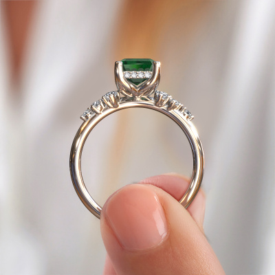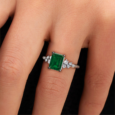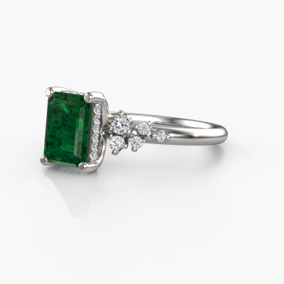 Der oben gezeigte Ring wird Emma EME genannt. Es ist ein Pavé Solitär Ring, da er einen zentralen Edelstein und ein Band mit Pavé-Fassung hat. Dieser Platin ring ist mit einem 8x6 mm smaragd schliff Smaragd-Mittelstein besetzt und das Band hat eine Pavé-Fassung mit Lab grown Diamant. Jedes Schmuckstück wird hergestellt mit Leidenschaft und Liebe, von einem unserer Meister-Goldschmiede.Dieser Fantasie Platin Pavé Solitär Verlobungsring mit Pavé-Fassung hat einen exquisiten, smaragd schliff Smaragd als Mittelstein. Um den zentralen Stein noch mehr zu betonen, hat das Band eine Pavé-Fassung mit weiteren Lab grown Diamant. Durch die offenen Krappen kann das Licht aus mehreren Winkeln auf den Smaragd treffen und der Smaragd-Ring funkelt noch mehr. Das obere Foto zeigt die leidenschaftlich handgefertigten Details des Rings. Die hohe Positionierung der Mittelstein ist ein echter Blickfang. Der perfekte Verlobungsring für das Kronjuwel Ihres Lebens!Nach Erhalt Ihrer Bestellung beginnen unsere Goldschmiede mit Leidenschaft den kreativen Prozess und fertigen Ihren Verlobungsring in unserem eigenen Studio. Da wir keine großen Lager haben, werden diese Kosten nicht an Sie weitergegeben. Unsere Preisgestaltung ist der Beweis dafür! Wir bieten Schmuck zum niedrigsten Preis, garantiert.Unser Team fügt unserer Online-Kollektion täglich neue Designs hinzu. Unsere Designer und Goldschmiede arbeiten zusammen, um das beste Design zu kreieren. Wir bemühen uns, eine vielfältige Kollektion von Schmuckstücken anzubieten. Vielleicht haben Sie ein bestimmtes Design im Sinn. Eines, dass Sie irgendwo gesehen haben. Gerne geben wir Ihnen eine kostenlose Beratung. Wir machen Ihnen ein Angebot, basierend auf einem fairen Preis/Leistungsverhältnis, das Sie verblüffen wird.Um es einfacher zu machen, bieten wir eine kostenlose 30-tägige Rücksendung.