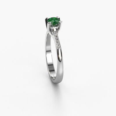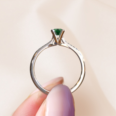 Der oben gezeigte Ring wird Isa 2 genannt. Es ist ein Pavé Solitär Ring, da er einen zentralen Edelstein und ein Band mit Pavé-Fassung hat. Dieser Platin ring ist mit einem 4.2 mm rund Smaragd-Mittelstein besetzt und das Band hat eine Pavé-Fassung mit Diamanten. Jedes Schmuckstück ist um Ihrem Finger Glanz zu verleihen. Jeder Ring wird von unseren Goldschmieden liebevoll von Hand gefertigt.Dieser klassische Platin Pavé Solitär Verlobungsring mit Pavé-Fassung hat einen exquisiten, rund Smaragd als Mittelstein. Um den zentralen Stein noch mehr zu betonen, hat das Band eine Pavé-Fassung mit weiteren Diamanten. Durch die offenen Krappen kann das Licht aus mehreren Winkeln auf den Smaragd treffen und der Smaragd-Ring funkelt noch mehr. Das obere Foto zeigt die leidenschaftlich handgefertigten Details des Rings. Die hohe Positionierung der Mittelstein ist ein echter Blickfang. Der perfekte Verlobungsring für das Kronjuwel Ihres Lebens!Nach Erhalt Ihrer Bestellung beginnen unsere Goldschmiede mit Leidenschaft den kreativen Prozess und fertigen Ihren Verlobungsring in unserem eigenen Studio. Da wir keine großen Lager haben, werden diese Kosten nicht an Sie weitergegeben. Unsere Preisgestaltung ist der Beweis dafür! Wir bieten Schmuck zum niedrigsten Preis, garantiert.Verschiedene Arten von neuen Ringen werden täglich von unserem Team angefertigt. Vielleicht haben Sie irgendwo einen Pavé Solitär Verlobungsring gefunden. Einen, den Sie Ihrem Liebsten schenken möchten. Bitte zögern Sie nicht, unseren Schmuckdesignern Ihre Gedanken und Ihr Design zu zeigen. Wir würden gerne Ihr Design in einen klassische Verlobungsring verwandeln. Sie können die Entwicklungen Ihres Ringdesigns verfolgen, da wir sehr detaillierte 3D-Zeichnungen verwenden. Darüber hinaus können Sie einen Dummy des Designs bestellen. Ein Dummy ist ein Kunststoffring, der nach Ihrem Ringdesign gestaltet werden kann. Sie können ihn anprobieren und prüfen, ob der Verlobungsring Ihren Vorstellungen entspricht. Wir senden Ihnen gerne ein unverbindliches Angebot zu einem fairen Preis/Leistungsverhältnis. Das Angebot wird Sie angesichts der Qualität des Rings und der Edelsteine verblüffen.Um es einfacher zu machen, bieten wir eine kostenlose 30-tägige Rücksendung.